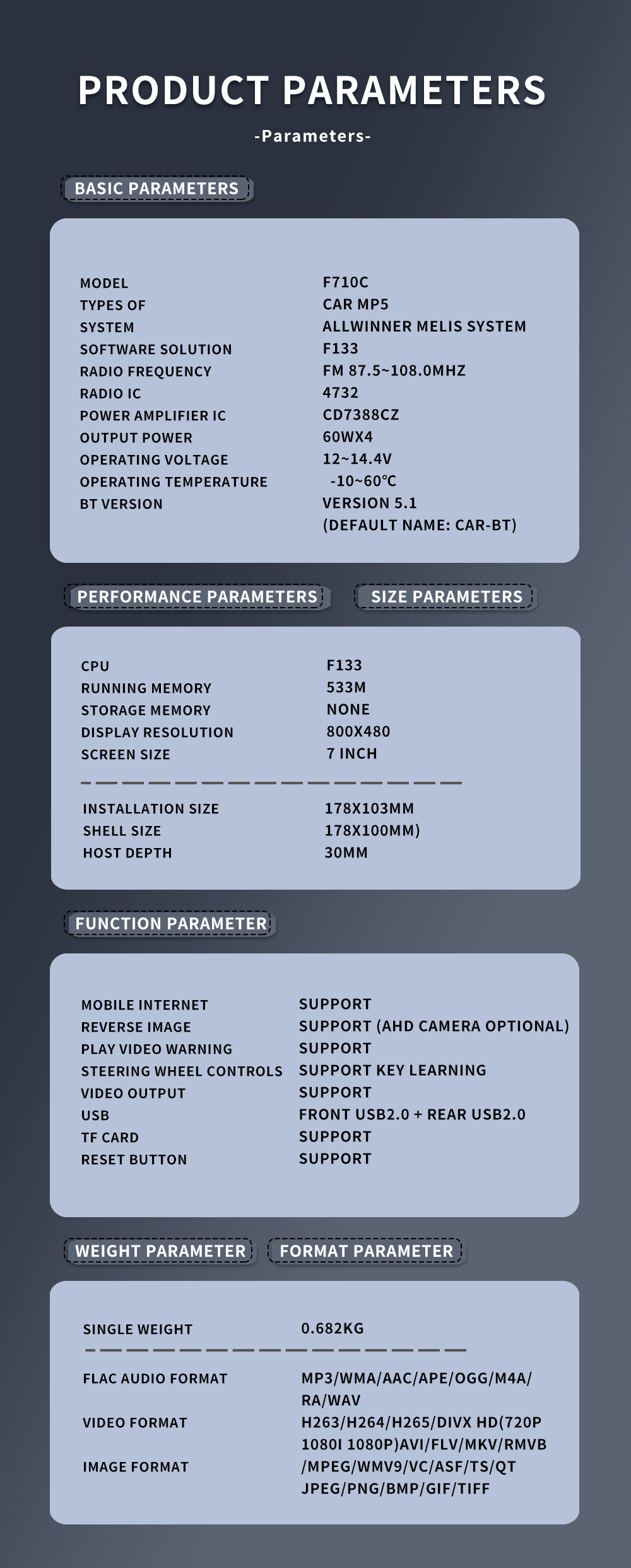 ![]() | 7inch car mp5 | F710C (Type-C) | ¥125.0 / ≈ 1 522 ₽ | 999999 | 5940059101896 | |