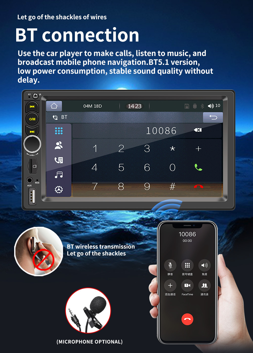 7 дюймовый сенсорный экран автомобильный Bluetooth MP5 плеер проводной CarPlay многофункциональное автомобильное радио