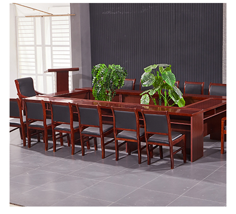 Двойной конференц-стол, стол для переговоров и стулья, орех, массив дерева, кожаная вставка, учебный стол и стулья, 1.2 м