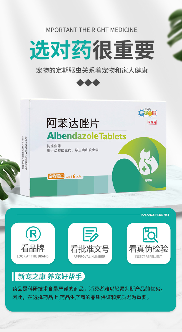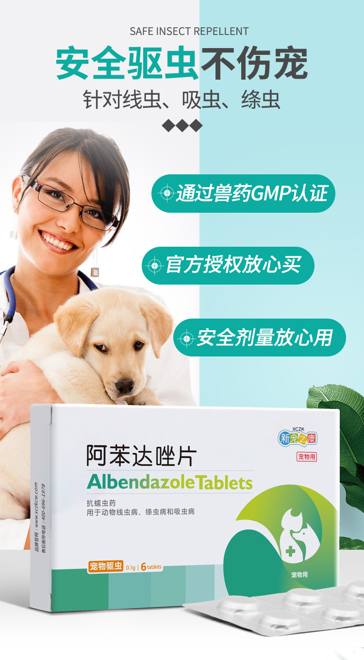 Таблетки Альбендазол Xinchongzhikang для универсального внутреннего дегельминтизации и дегельминтизации от круглых червей для собак и кошек