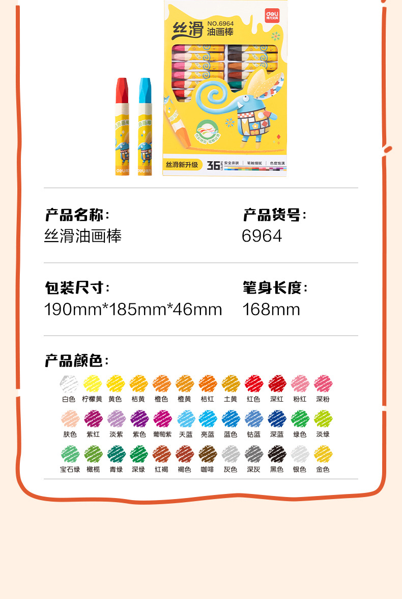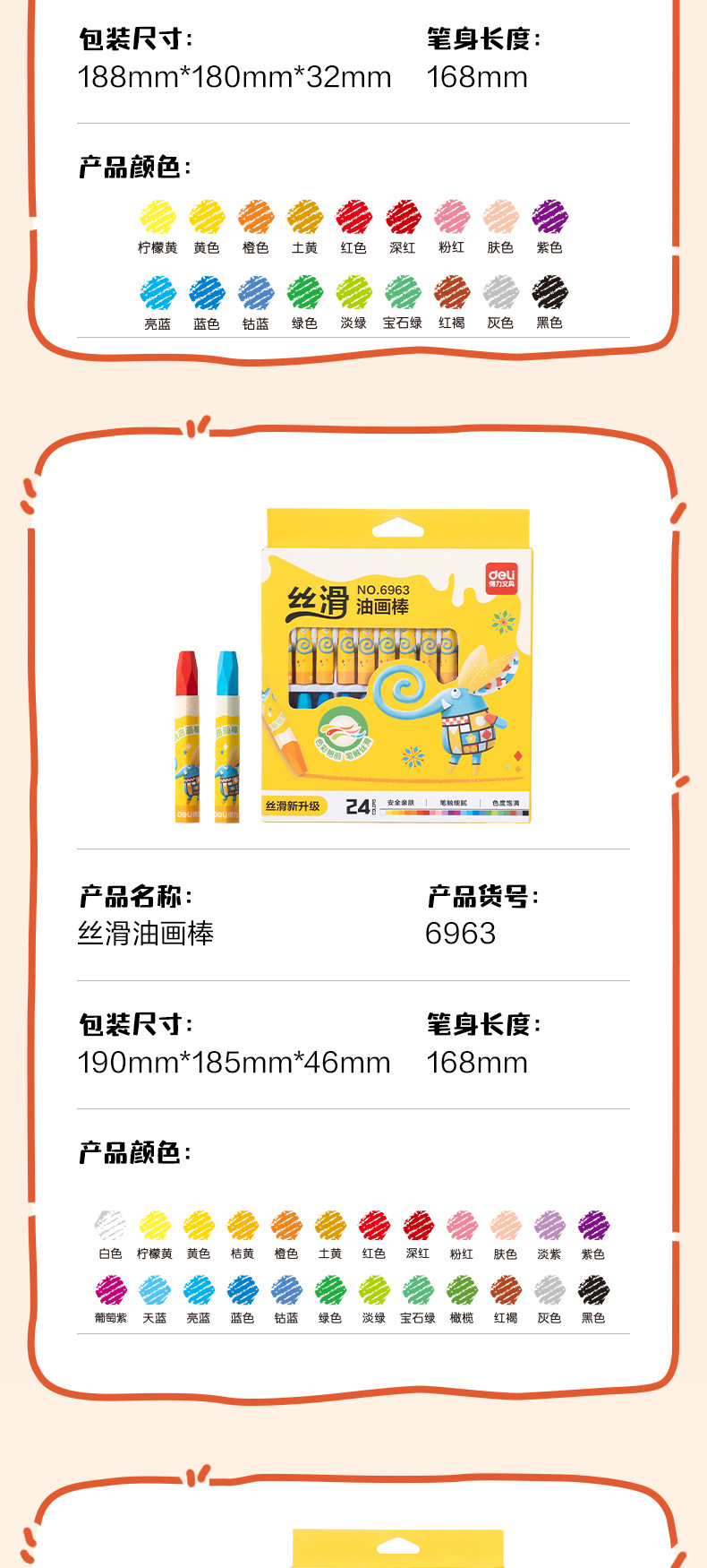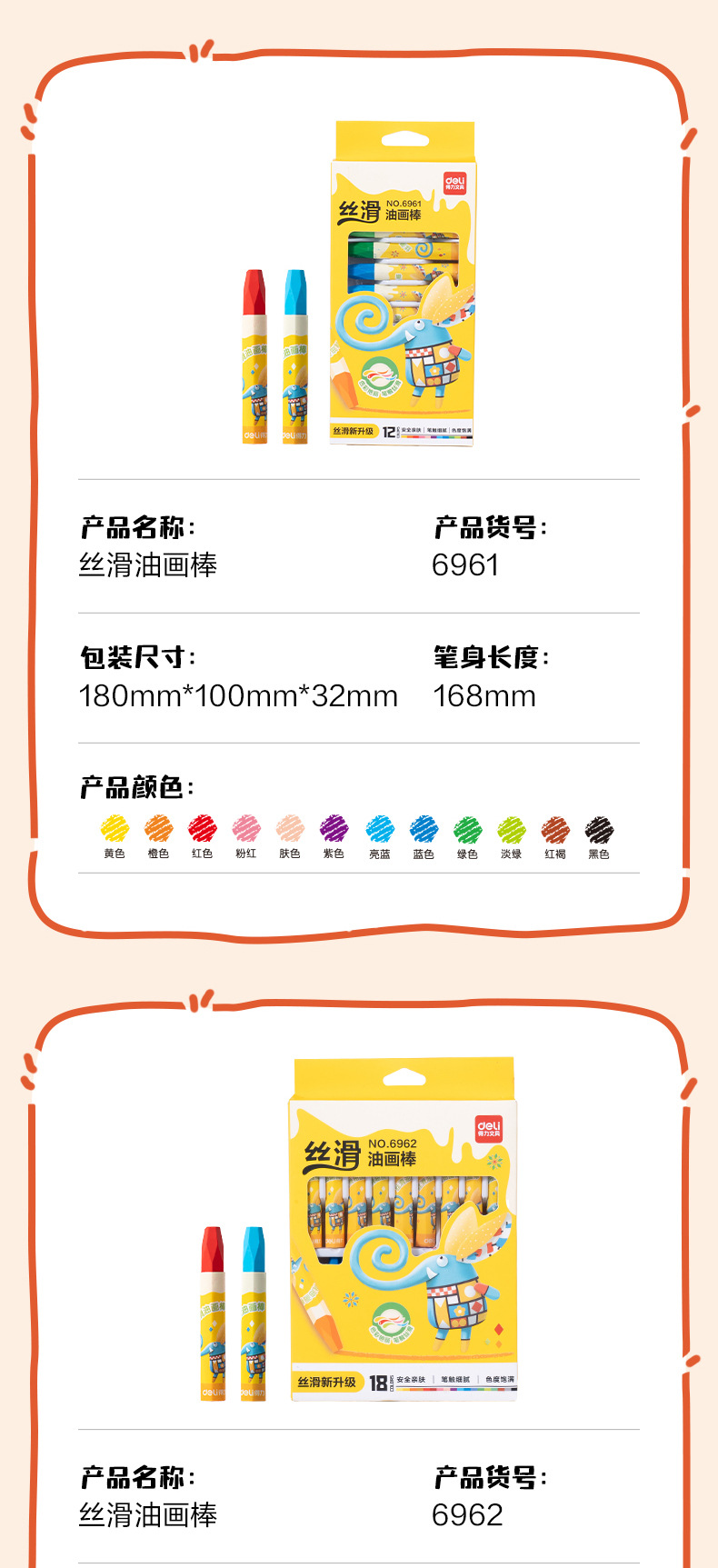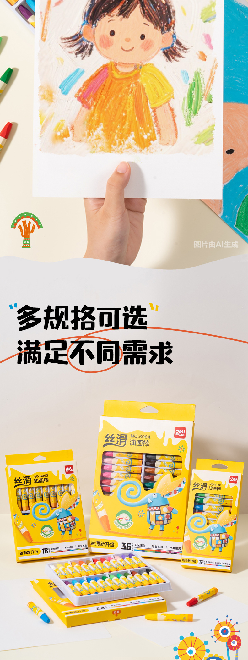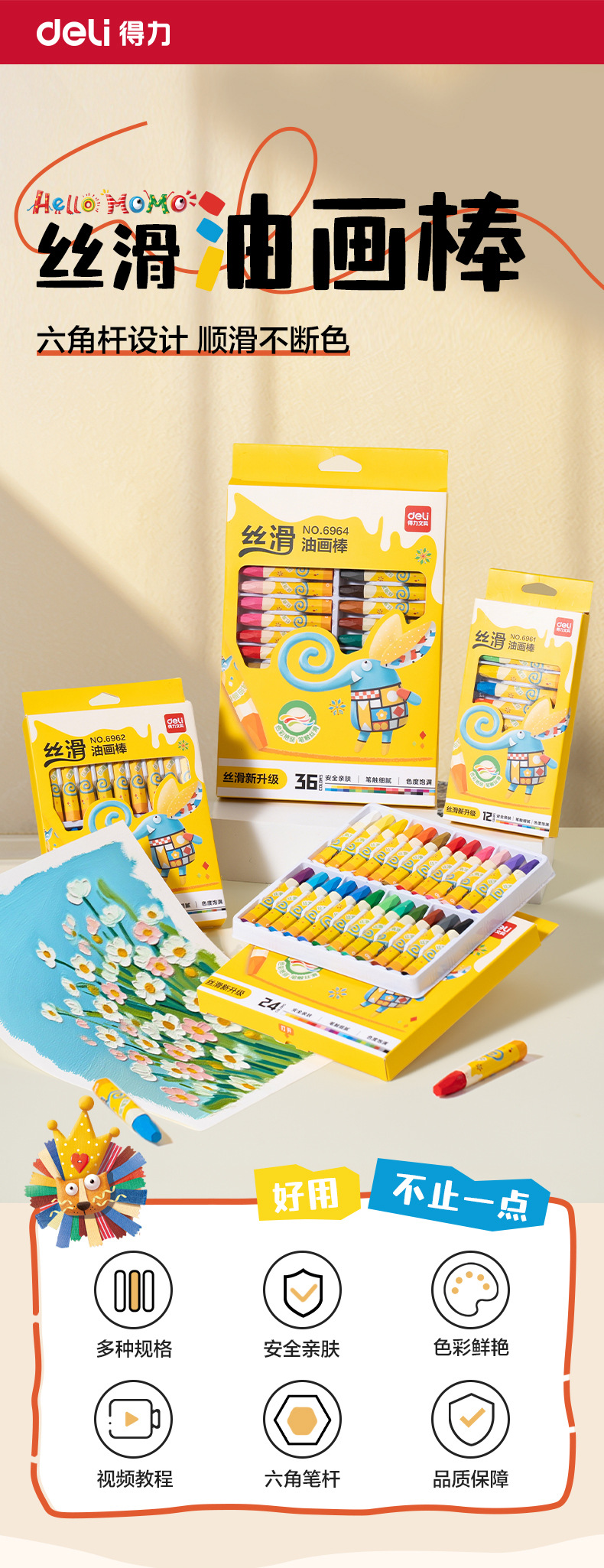 Масляные мелки Deli, 36 цветов, безопасные для детей, нетоксичные, детские, цветные кисти, восковые ручки, 12 и 24 цвета