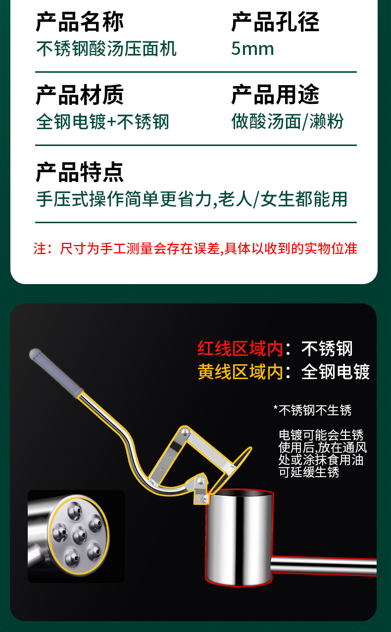 Пресс для лапши с кислым супом на восточном стиле, инструмент для рисовой лапши из нержавеющей стали, ручной артефакт для порошка сассе
