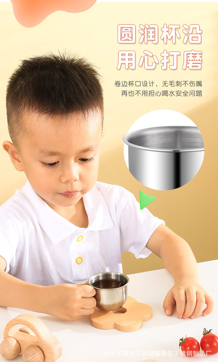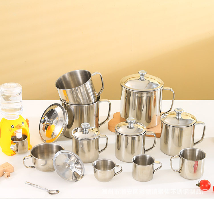 Кружка из нержавеющей стали 304, водяная кружка для детей в детском саду, молочная кружка 200 мл, широкая короткая кружка с крышкой, маленькая милая