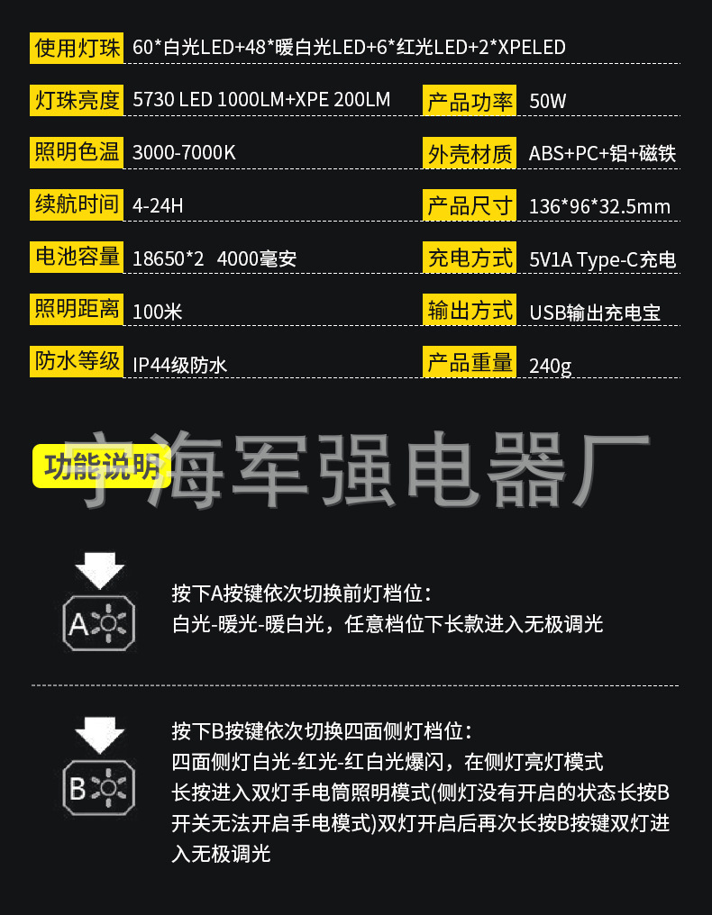 ![]() | Multifunctional work light 686 | ¥43.5 / ≈ 524 ₽ | 5551 | 5914893678092 |