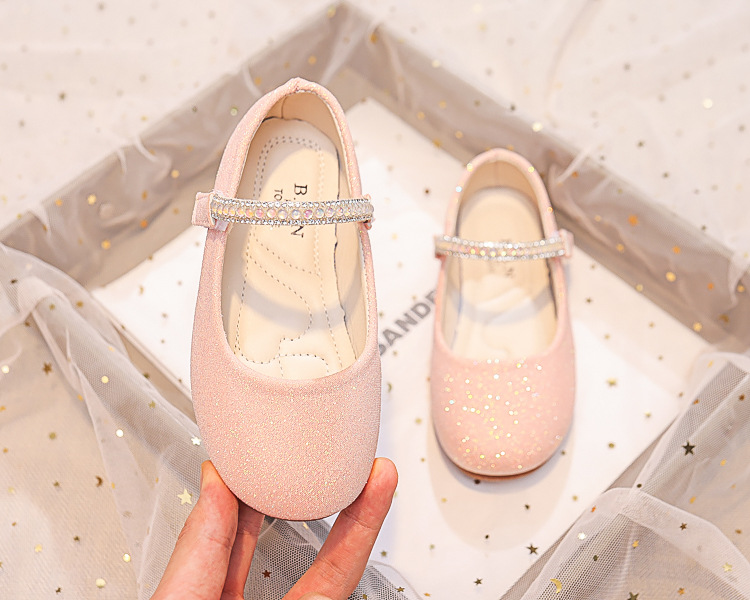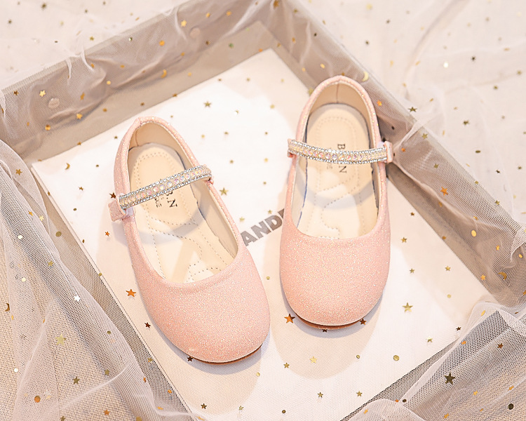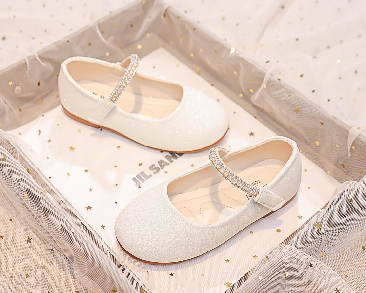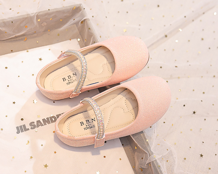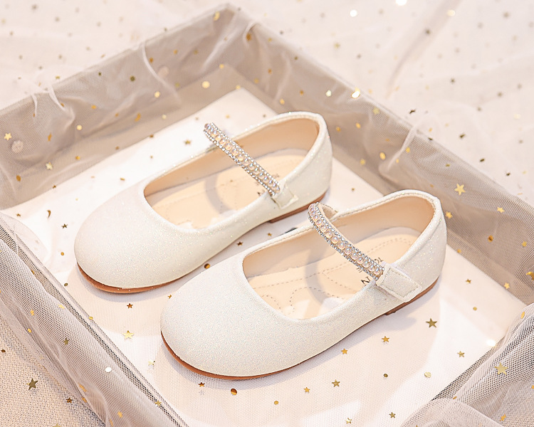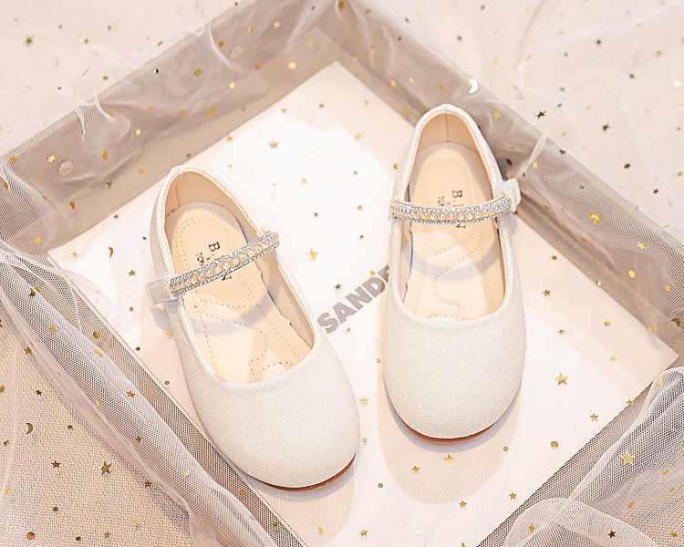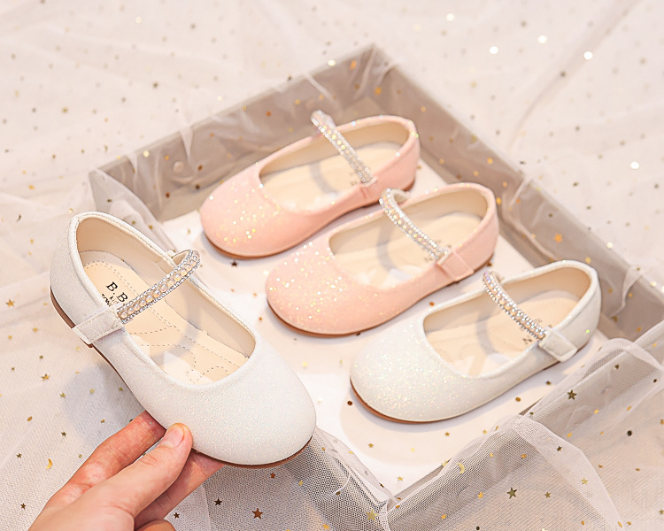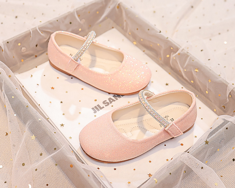 Детские туфли принцессы 2025 весна-осень новые детские обувь мягкая подошва туфли с стразами кожаные туфли для девочек