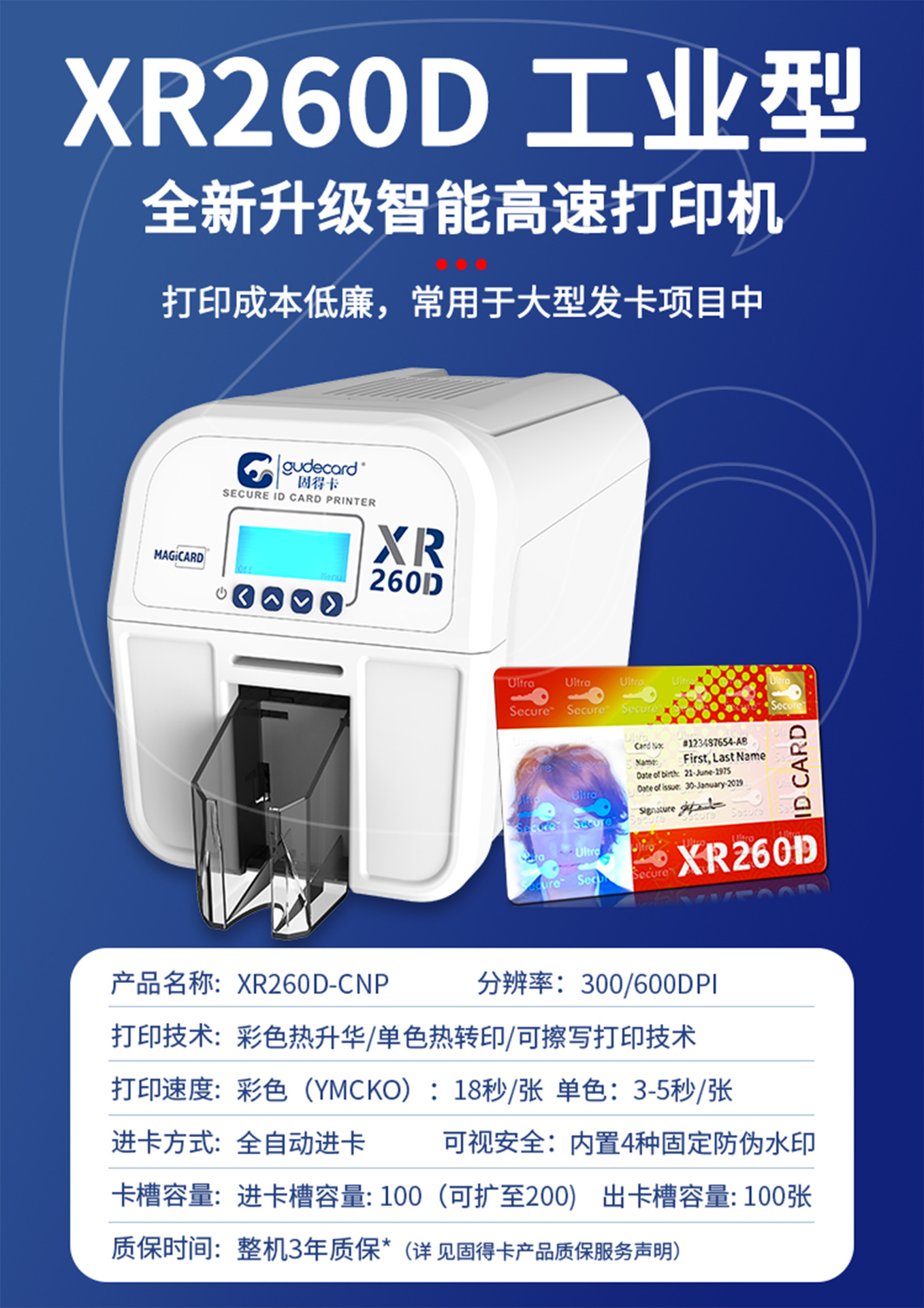 Профессиональный принтер карт XR260D/160Pro для пластиковых карт, членских карт, карт доступа, бизнес-карт