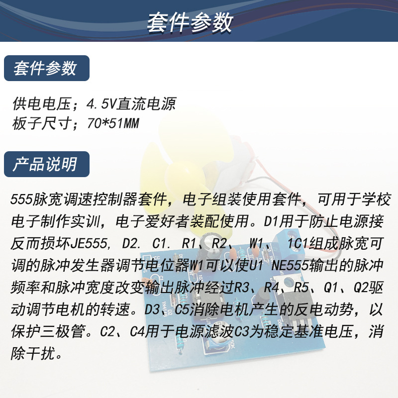 Контроллер скорости пульсации DC мотора NE555 Компоненты для производства Обучение DIY Электронная сварка комплект продукта