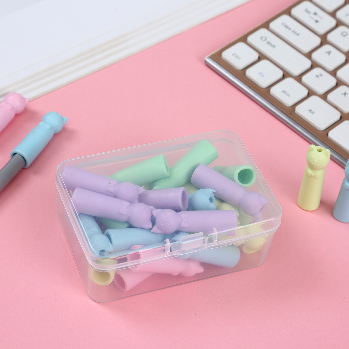 Новая мультяшная крышка для ручки ластик удлинитель карандаша защитный чехол мягкий резиновый чехол в виде кошачьих ушей
