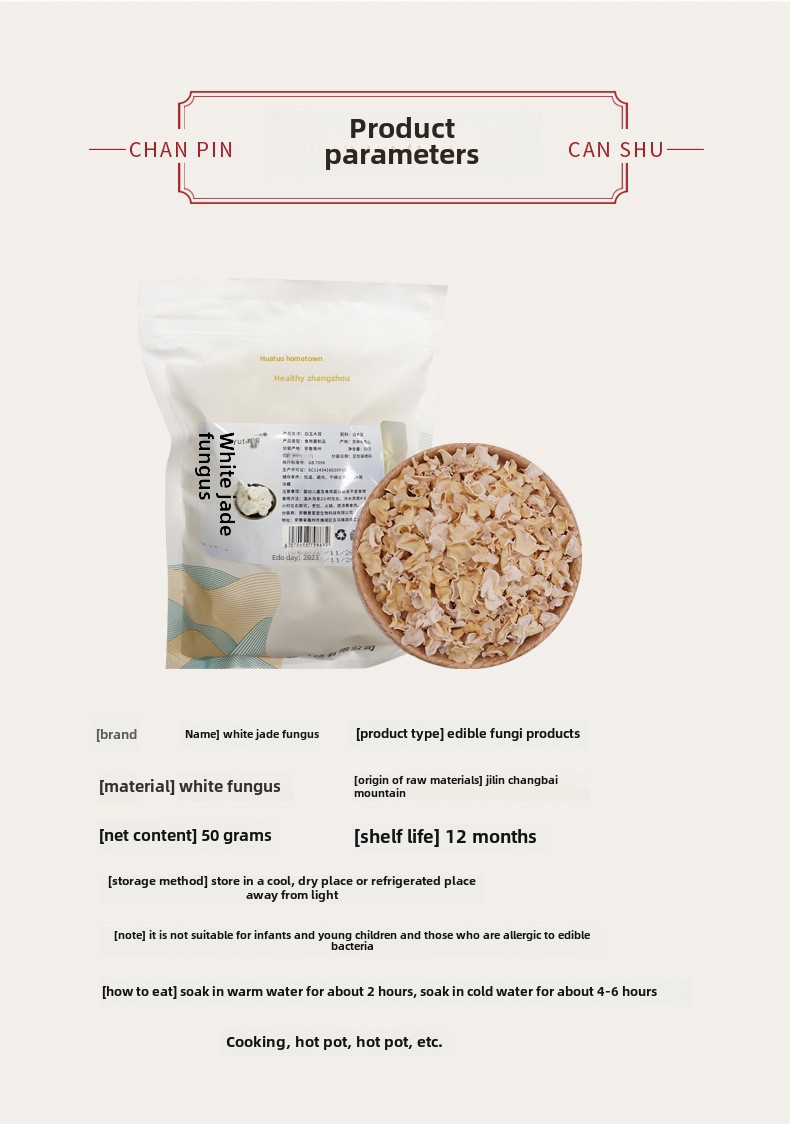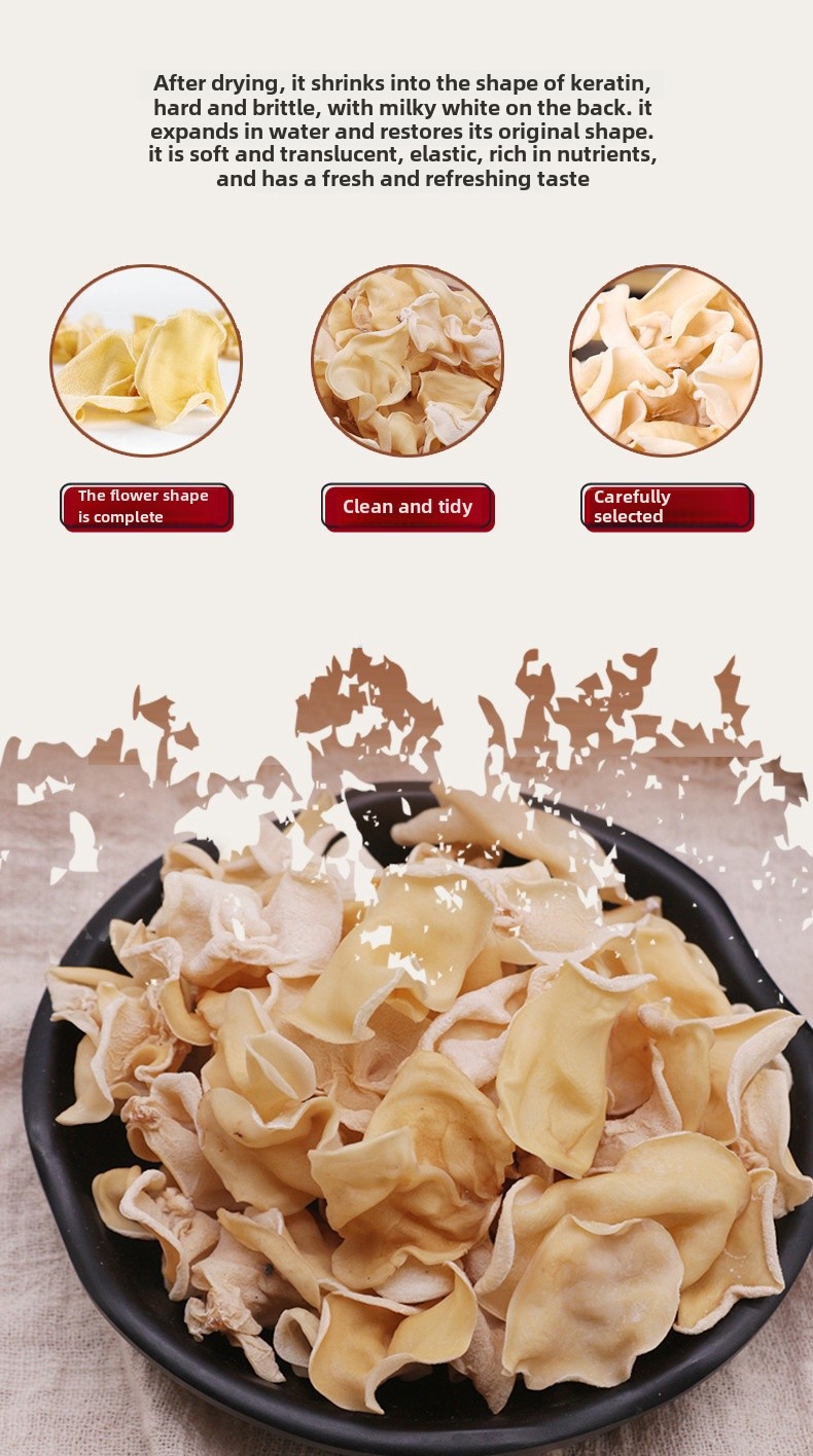 - Natural Dried Fungus:Our product is a natural dried fungus, sourced from the northeast region of China, known for its high-quality white jade wood ear fungus.