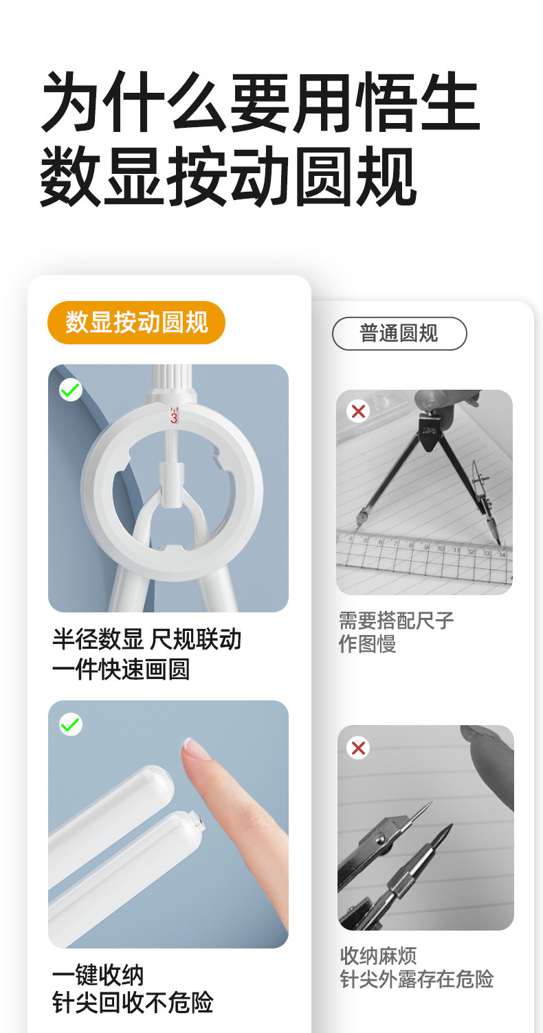 Цифровые компасы Wu Sheng для рисования кругов для экзаменов. Многофункциональные компасы с карандашным грифелем