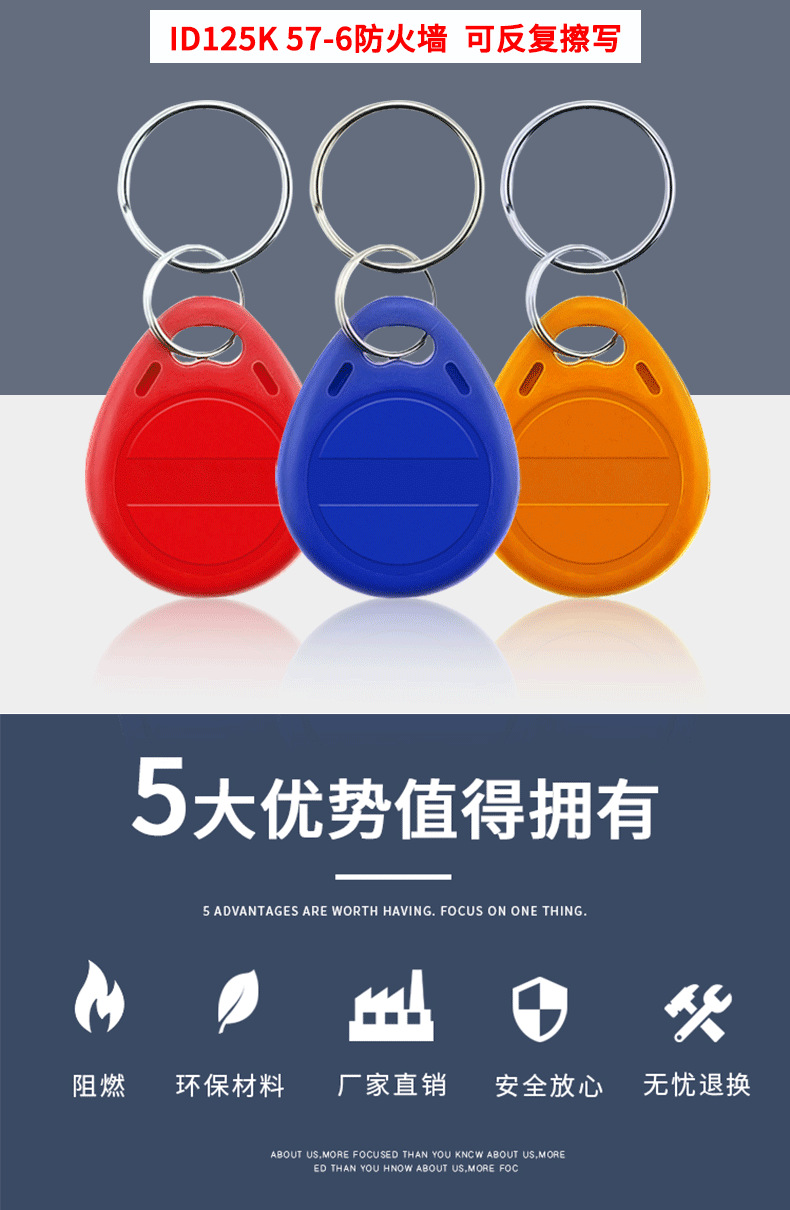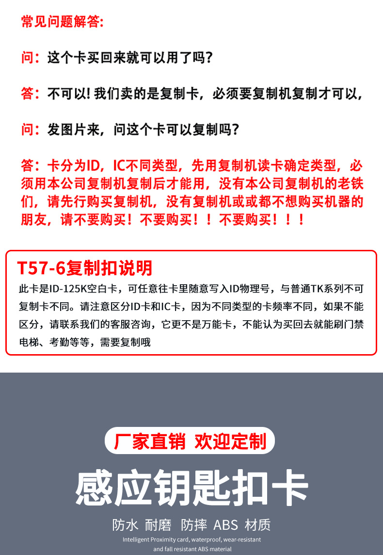 Карта копирования Id, шифрование ключа, ключевой брелок T57-6, карта с возможностью стирания для домофона, индукционная копирующая карта 125K
