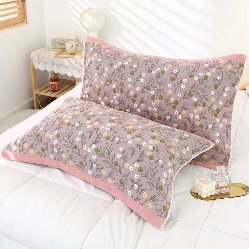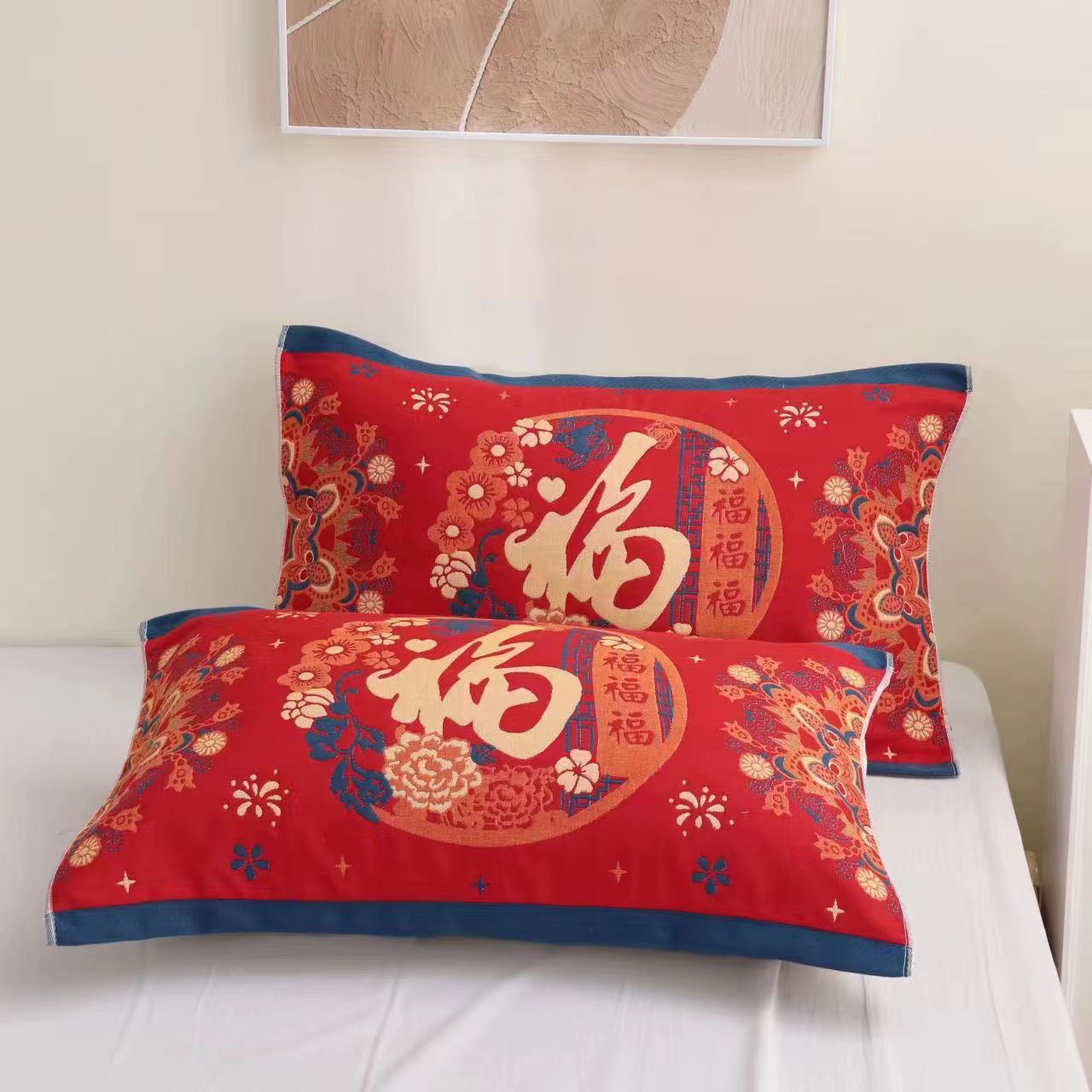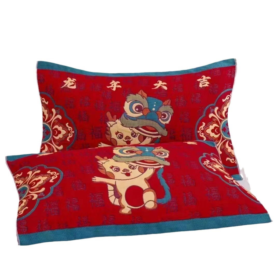 Наволочка из хлопковой марли для пар с мультяшным жаккардом утолщенная восемь слоев дышащая