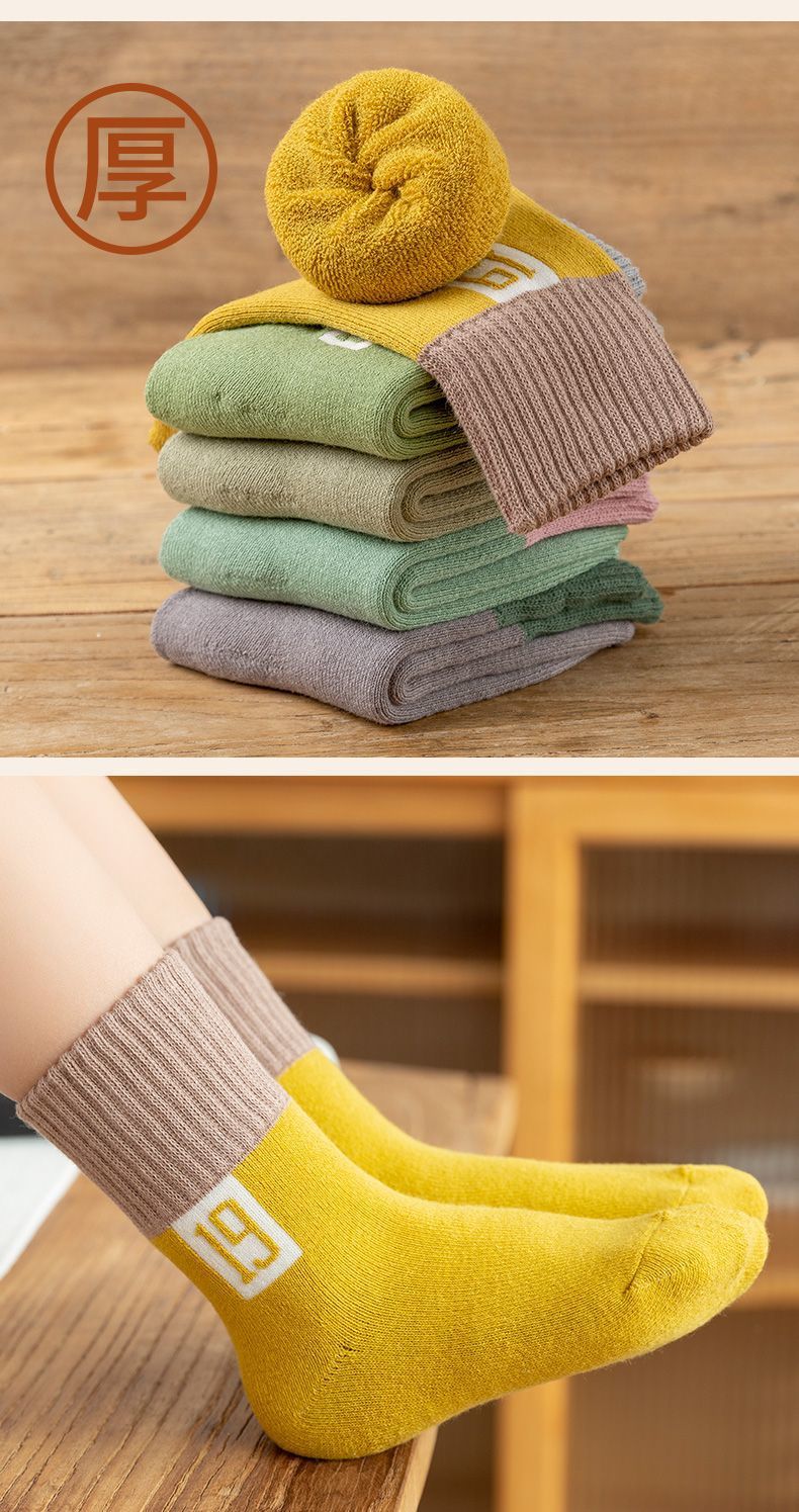 5 пар бесплатная доставка утолщенные теплые детские носки осенние и зимние теплые носки с флисовой подкладкой для средних и больших детей длинные носки