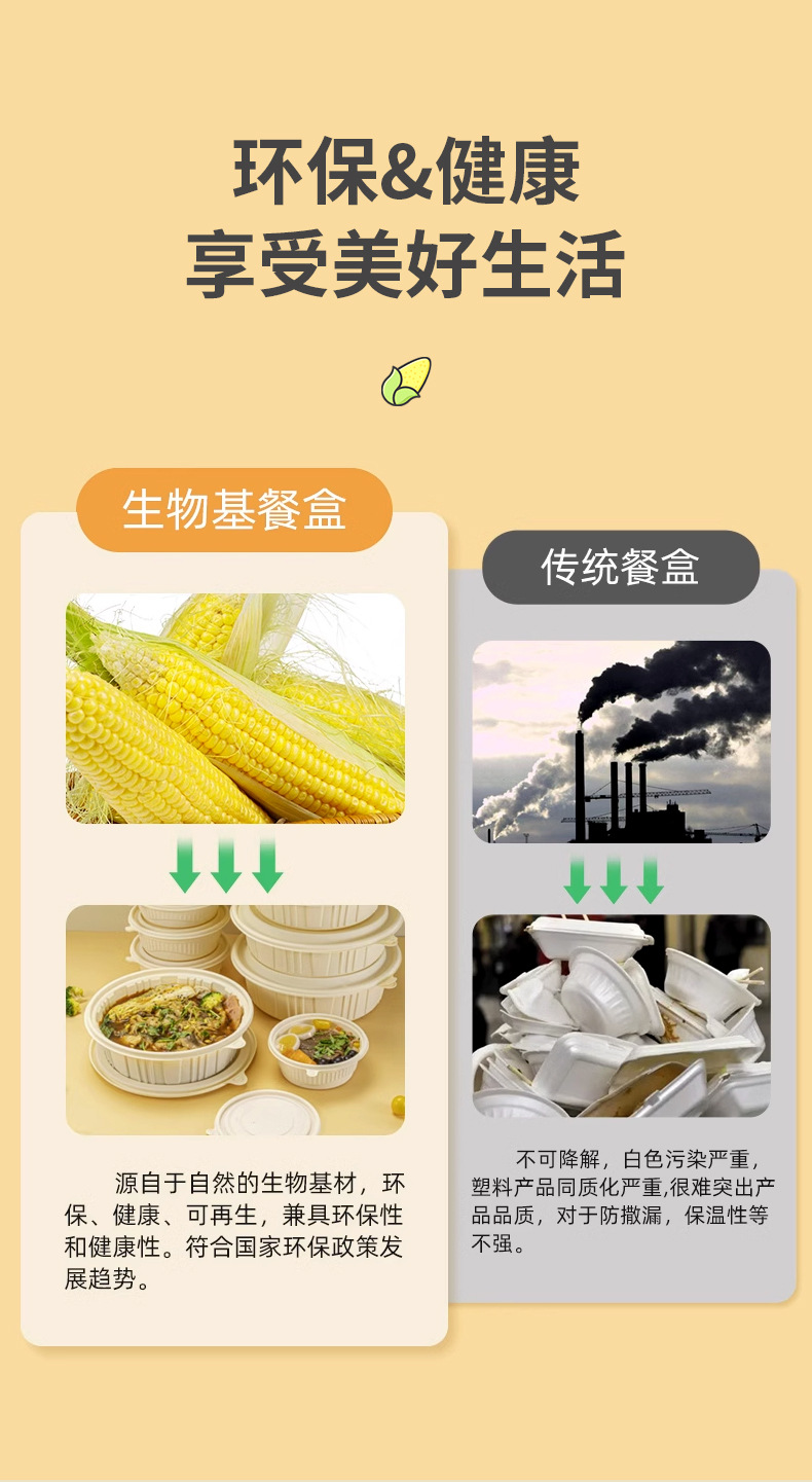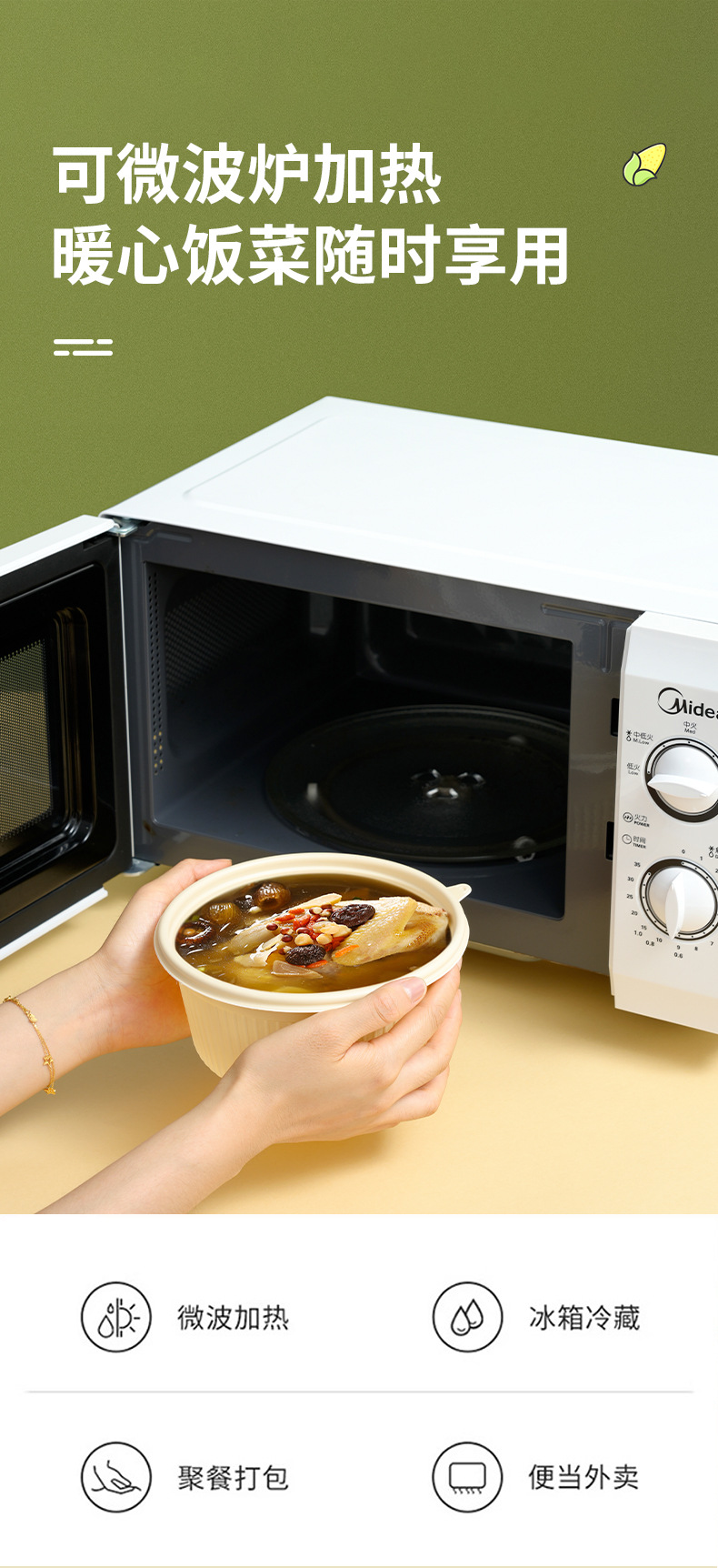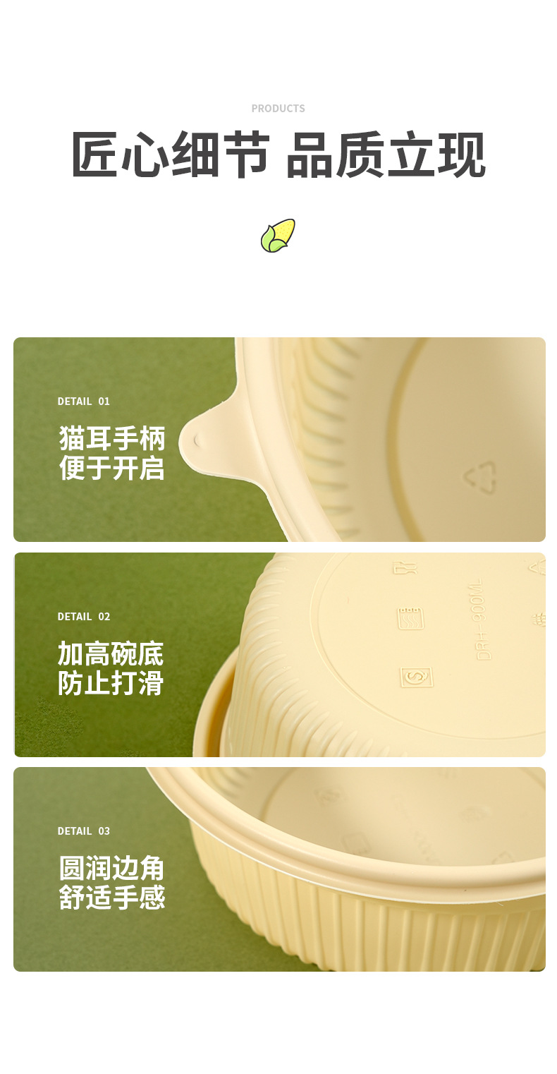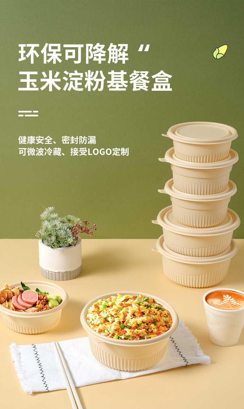 Биоразлагаемый круглый ланч-бокс, упаковка для выноса, экологически чистый