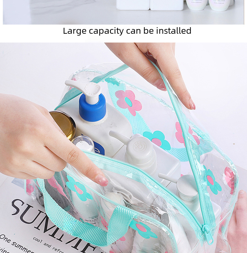- High Capacity:This transparent print make-up bag offers a large capacity, perfect for storing all your essentials during travel or makeup application.