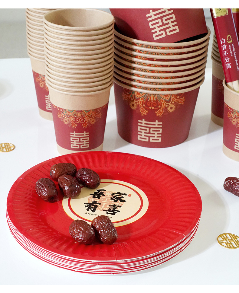 Упаковка Ziyi одноразовая красная бумажная чаша для свадьбы, банкетные принадлежности, коллекция свадебных чаш, чайная церемония