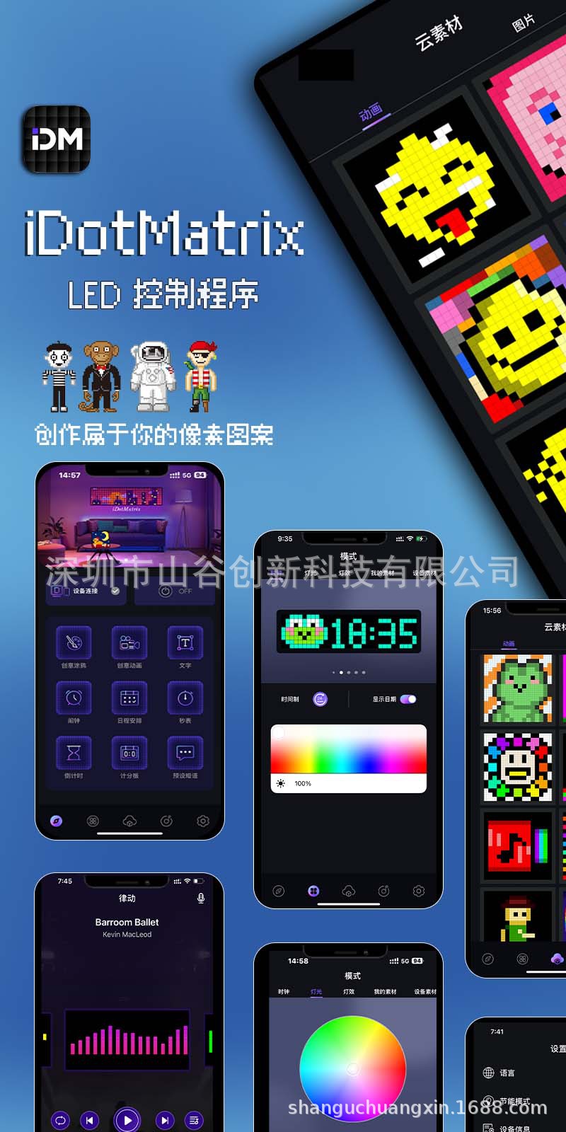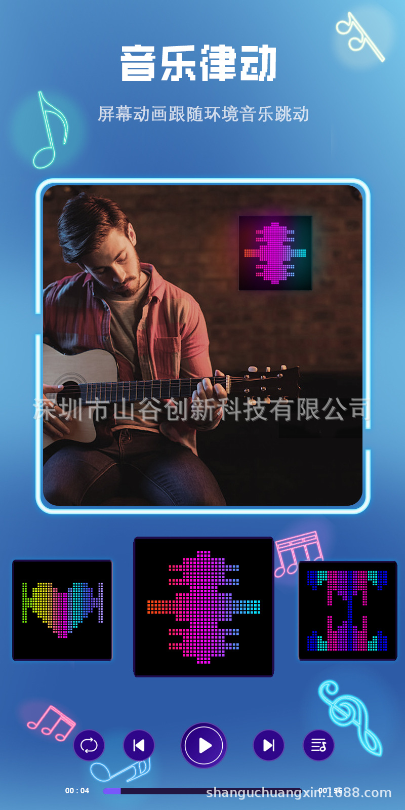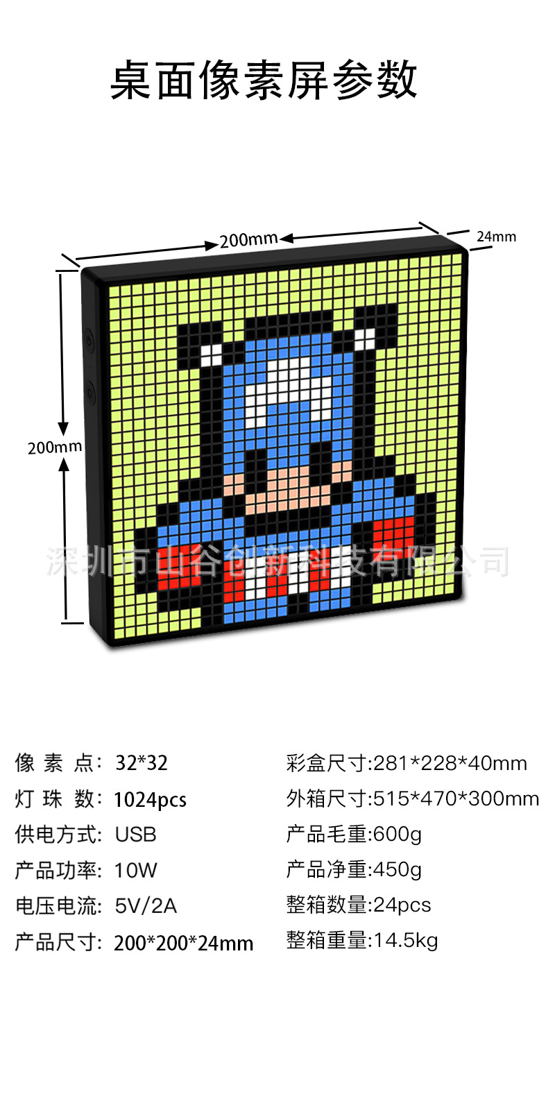 2023年新品上市:DIY马赛克像素风画框,内置多种动画场景素材,有DIY涂鸦,智能闹钟,倒计时,比赛计分板,智能时钟,日程安排,秒表,预设短语,文字,动画,音乐律动,支持多国语言等,APP功能强大稳定,实时发送,一键切换,海量云素材应有尽有免费使用,蓝牙连接,操作便捷!它既是一台科技潮物更是可玩性超强的氛围灯,年轻时尚潮流风向标!