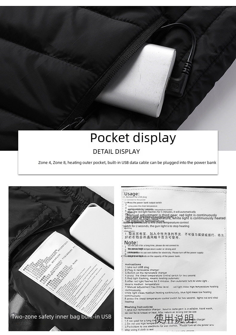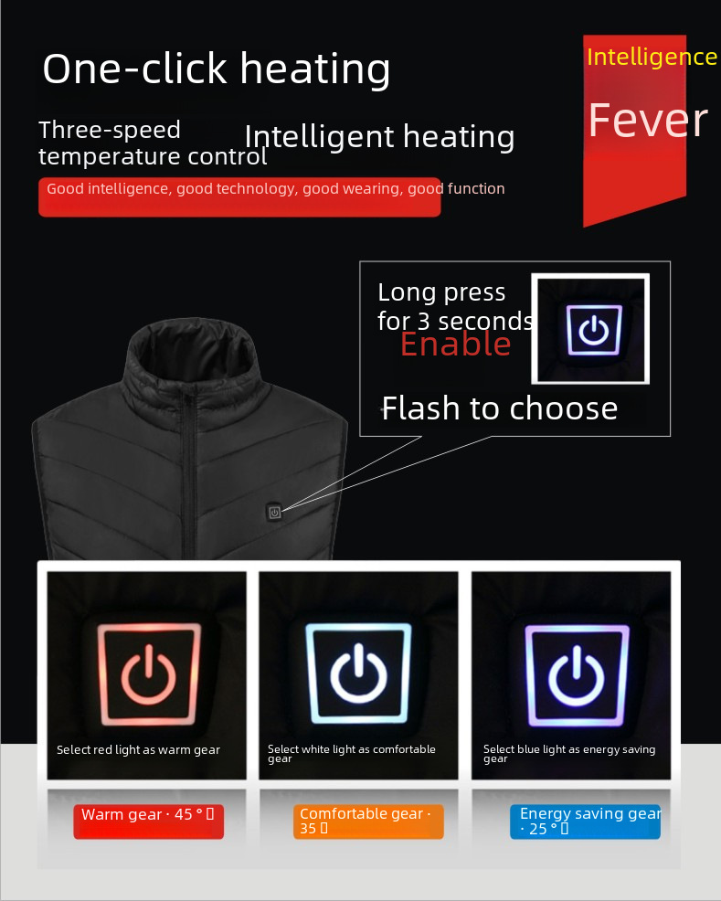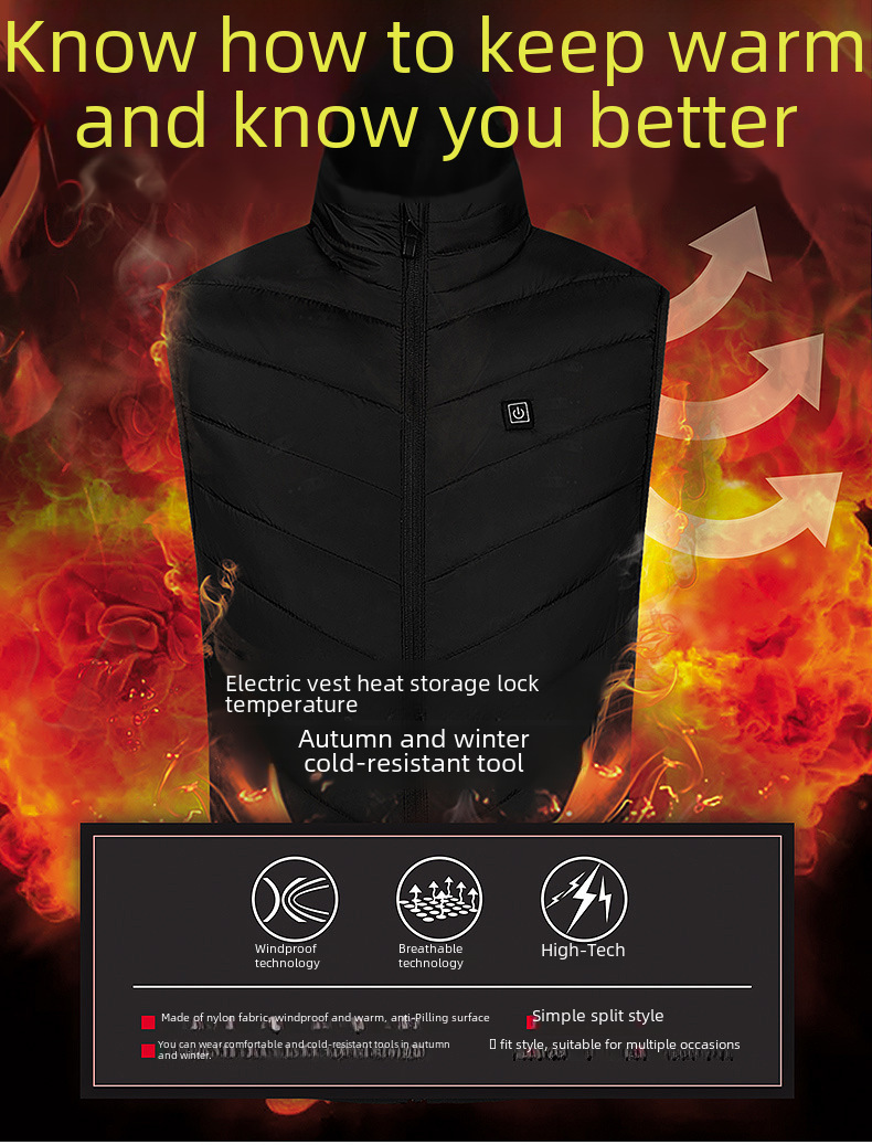 - Versatile Use:Designed for versatility, this heated vest can be used in various scenarios - from sports to leisure activities, providing constant heat to keep you warm.