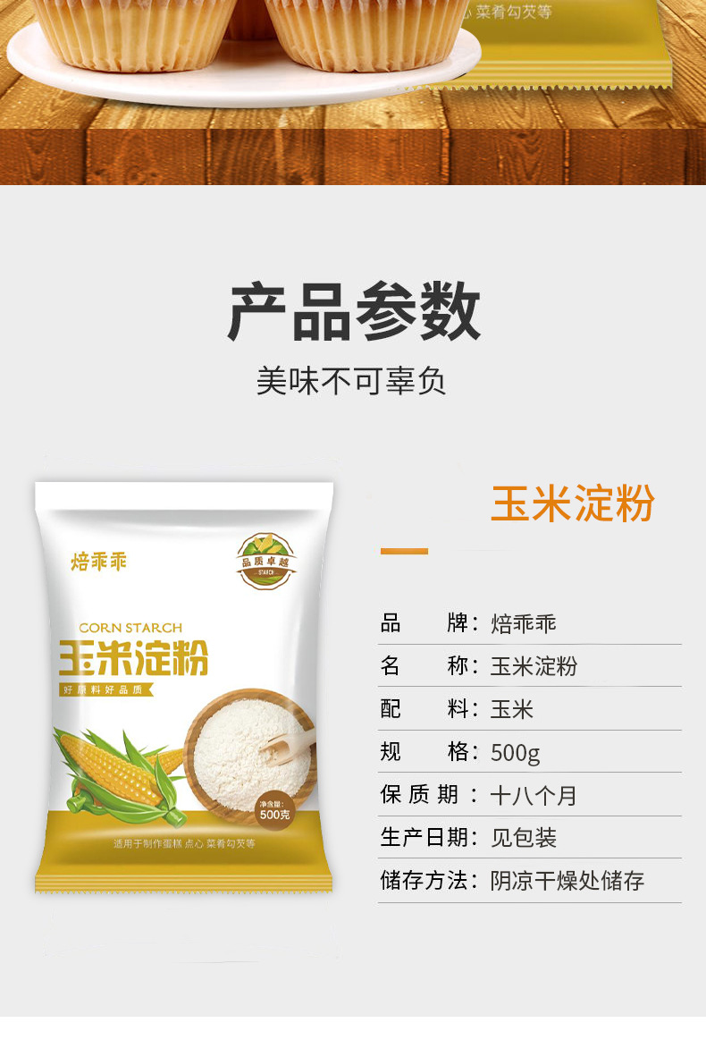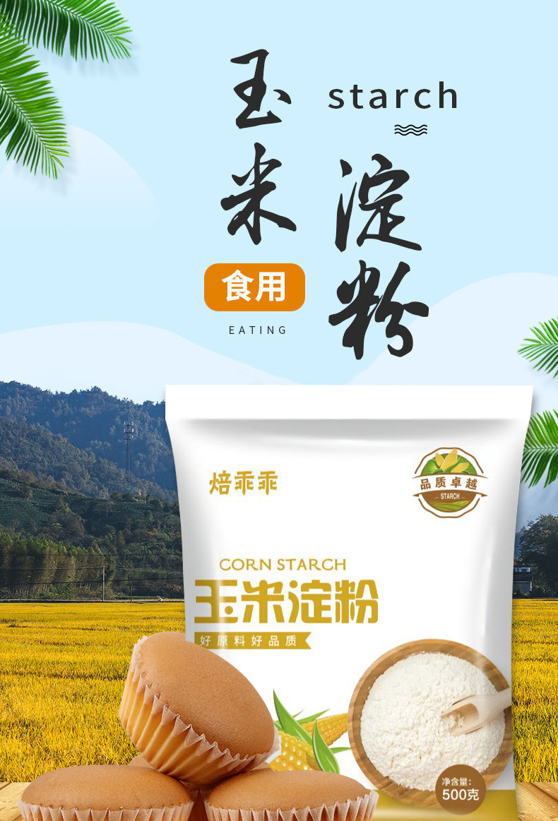 Прямые поставки с завода 500 г кукурузного крахмала, съедобный крахмал, высококачественная мука, жарка, загустение, выпечка, высокая вязкость, первый сорт