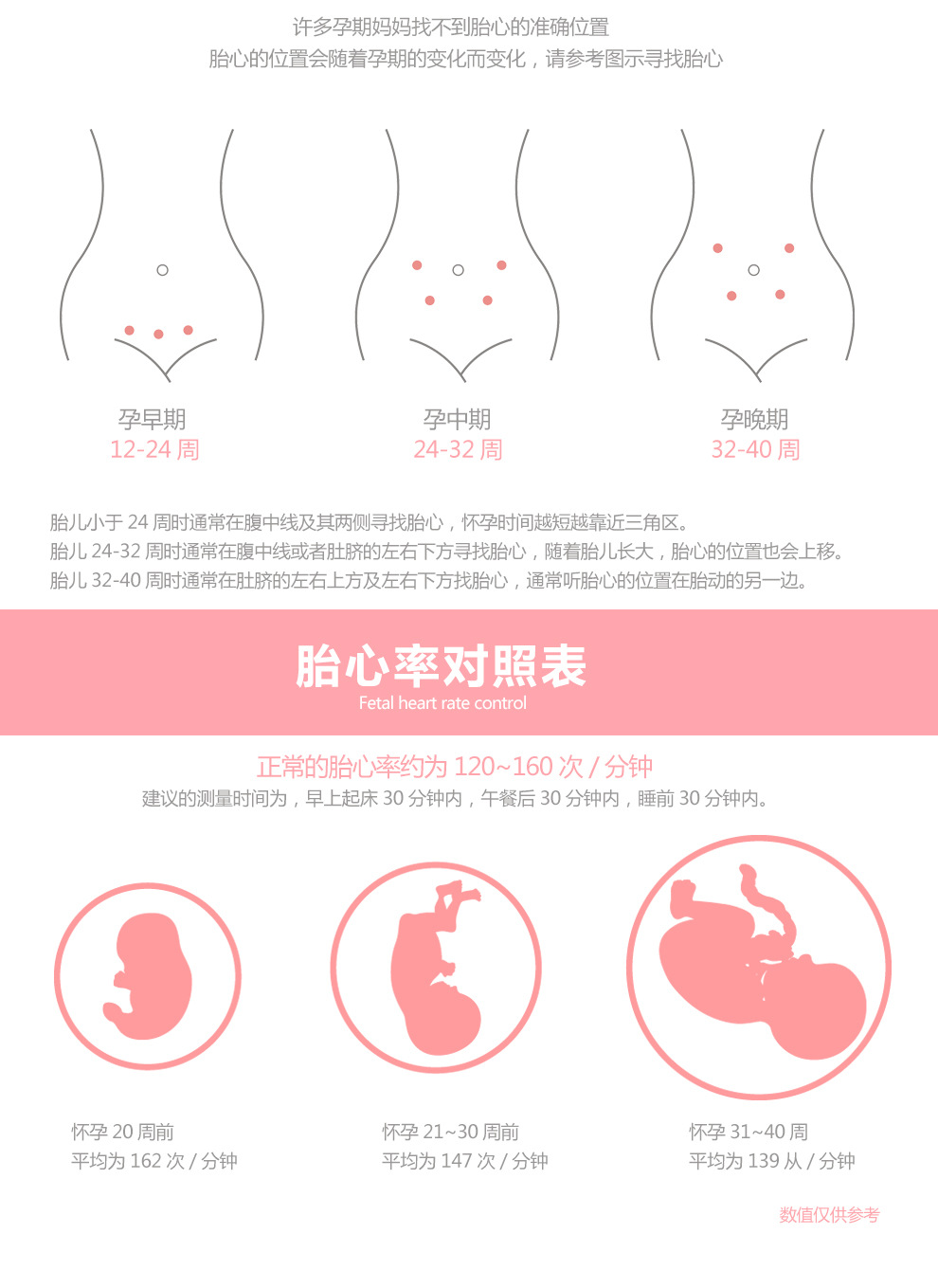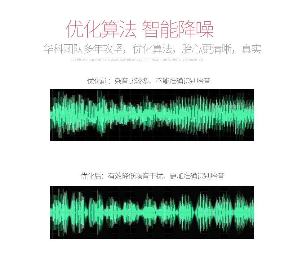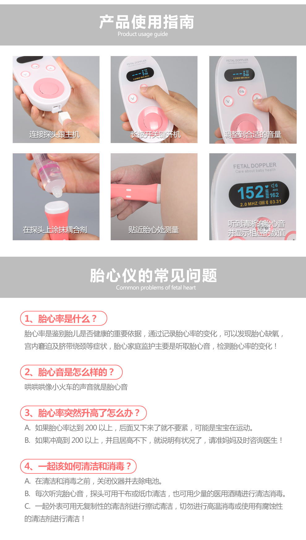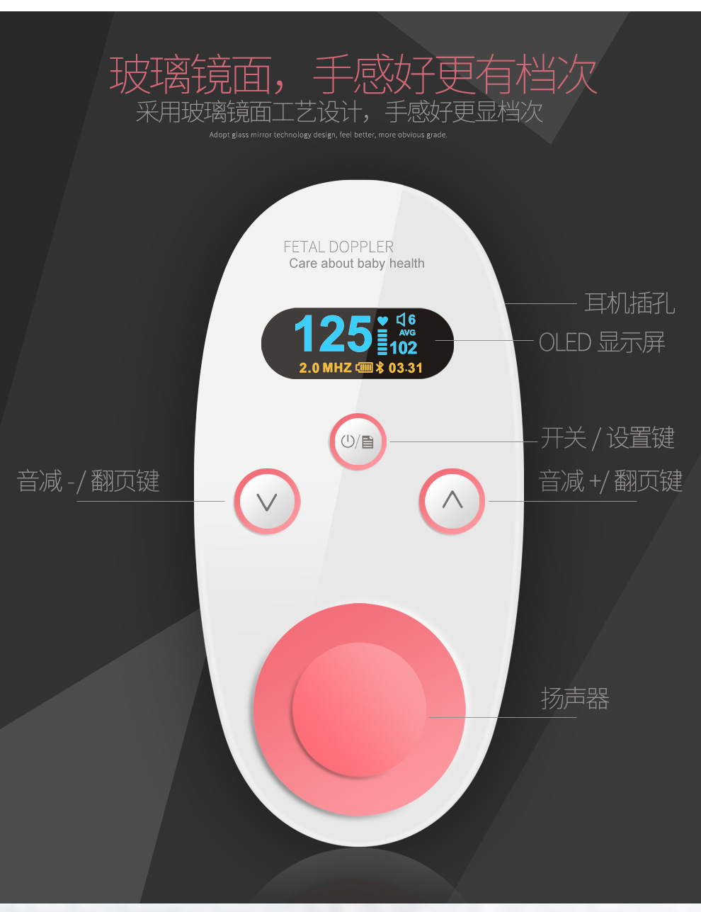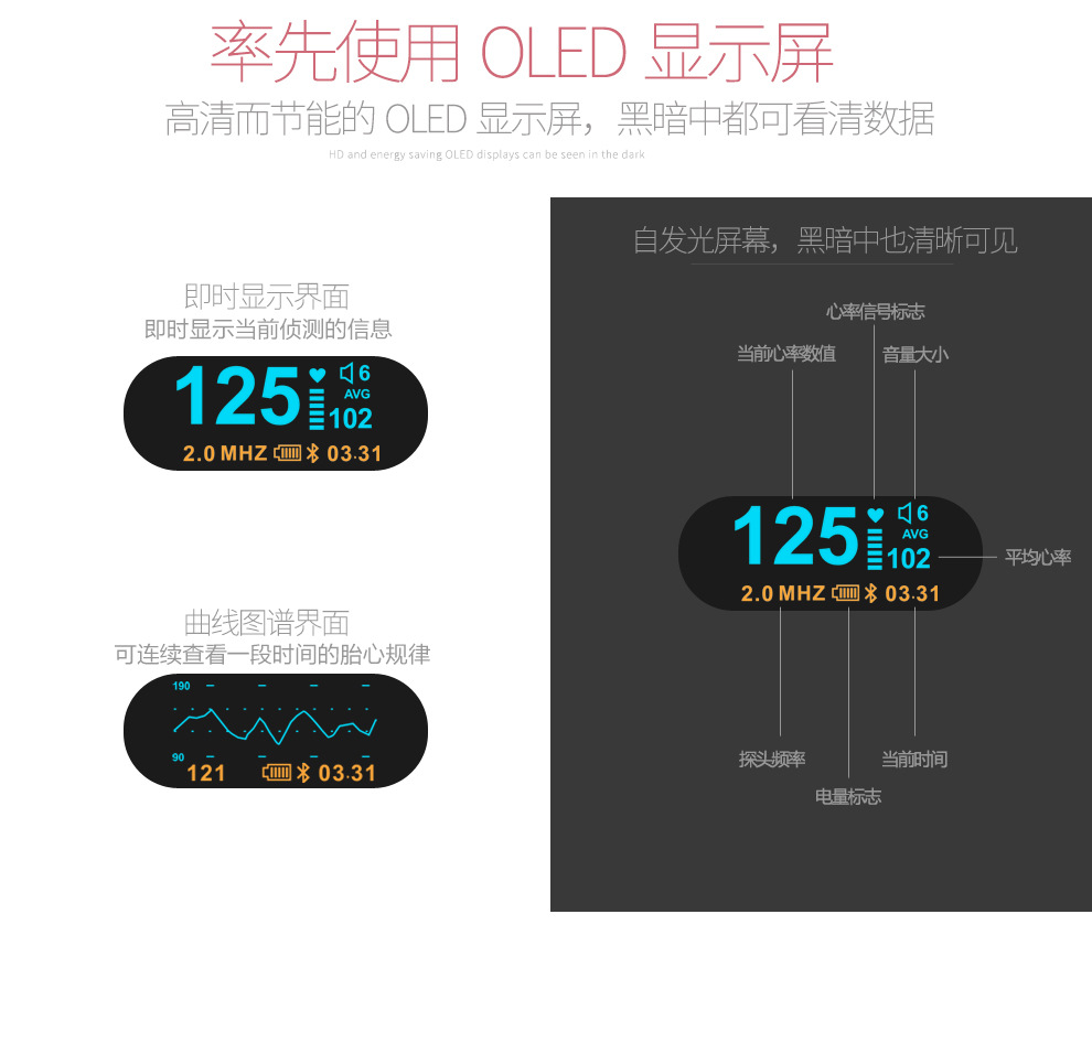 7、采用与胎儿监护仪同样的DSP技术和胎心率算法,保证监测的胎儿心率准确、可靠