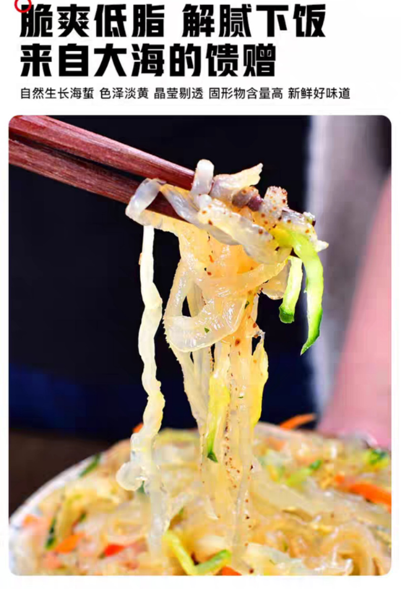 ![]() | Jellyfish shreds 420g (with ingredients package) | ¥4.5 / ≈ 55 ₽ | 99788 | 5876569476122 |
