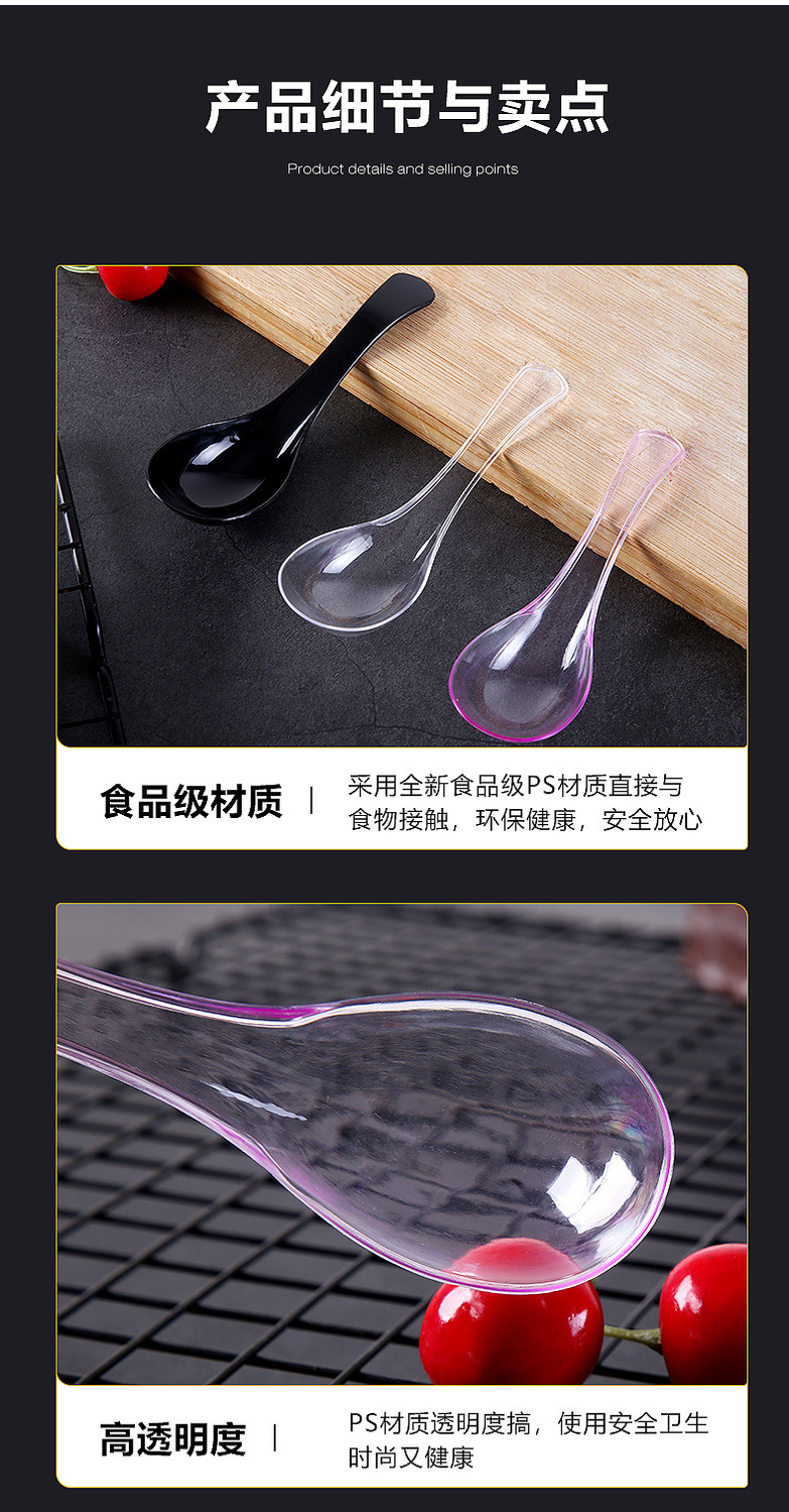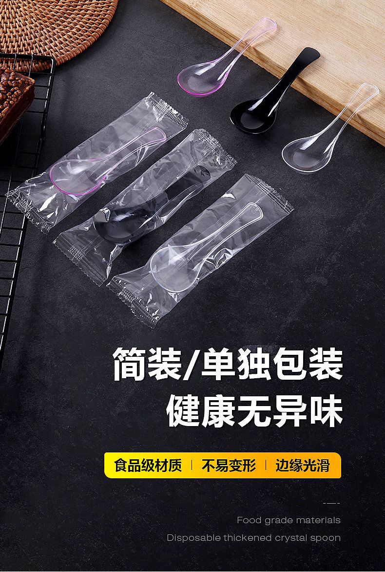 Прозрачная одноразовая ложка 808, оптовая продажа, упаковка на вынос, утолщенная пластиковая ложка для фастфуда