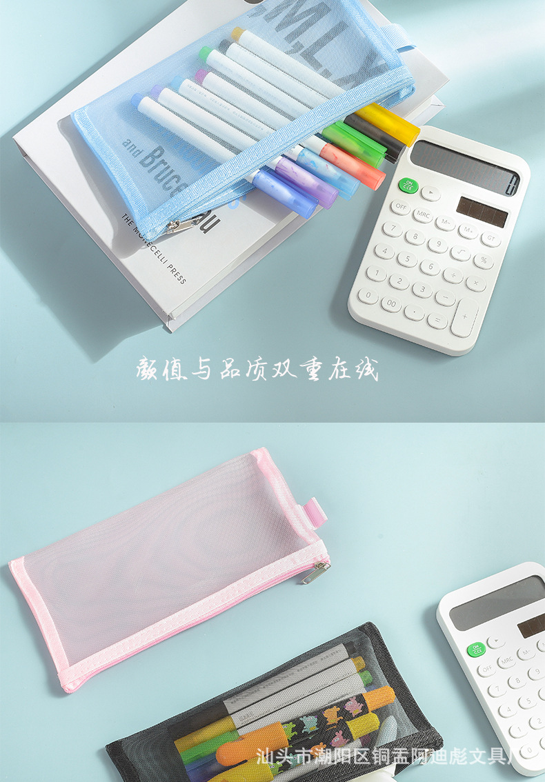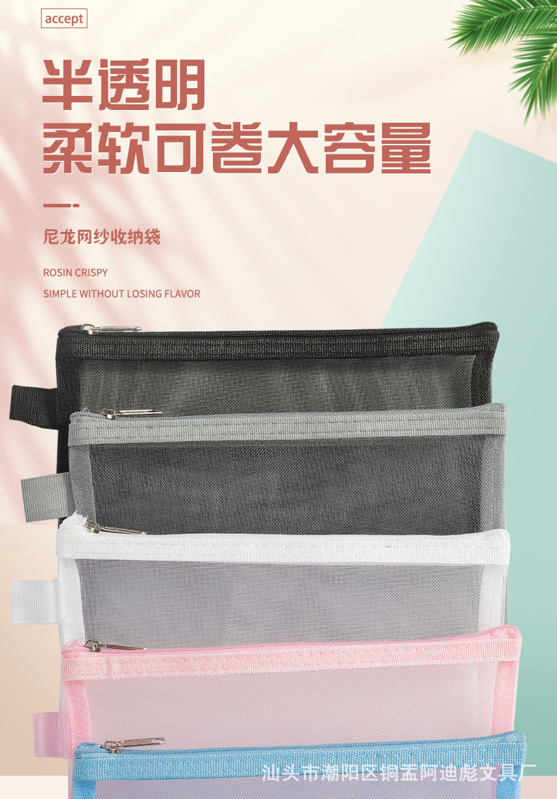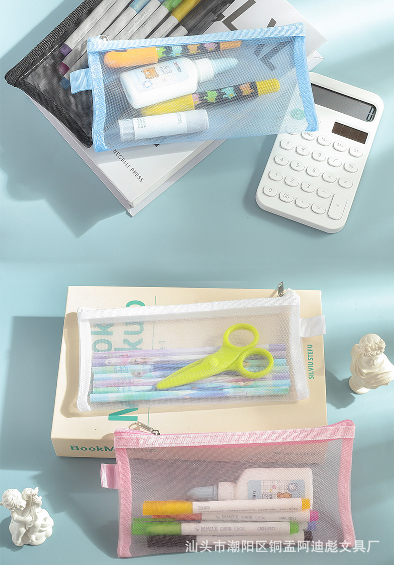 Кейс для карандашей большого объема для студентов, простой прозрачный сетчатый мешок, портативная сумка для экзаменов, монетница
