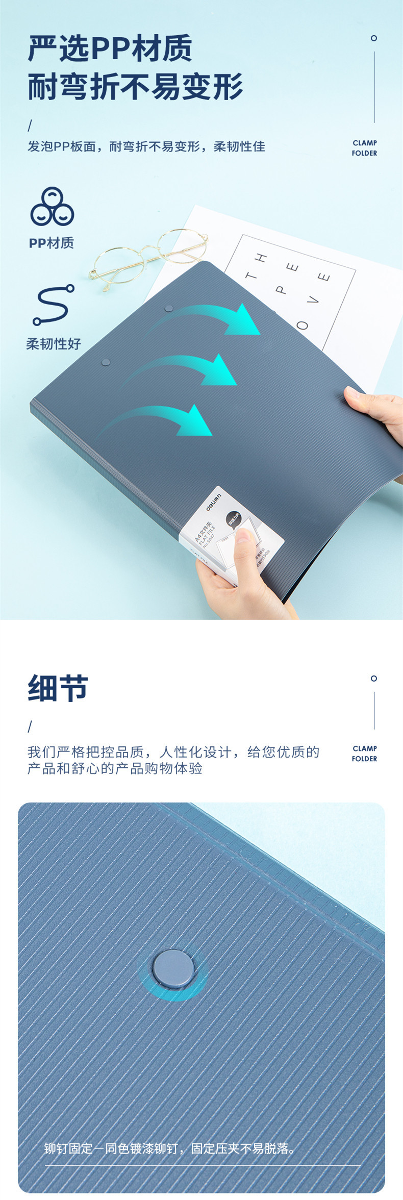 Папка Deli 5047 A4, двойной зажим, супер сильный, для организации тестовых бумаг