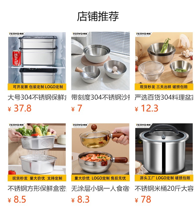![]() | 19cm+22cm+25cm japanese style basin 3 pieces 304 | three-piece set | ¥32.5 / ≈ 392 ₽ | 8952 | 5744682300660 | |