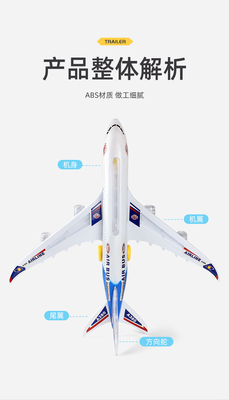 Электрический самолет для детей, модель пассажирского самолета с светом и историями, игрушка для мальчиков