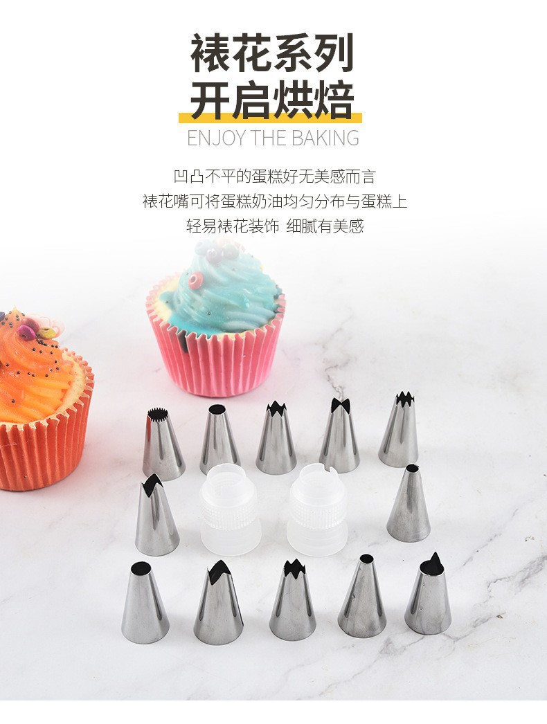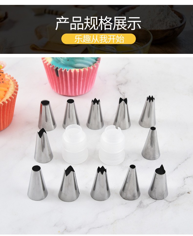 Полный набор насадок из нержавеющей стали Утолщенный мешок для выпечки Набор вспомогательных инструментов для выпечки крема 8/12 частей