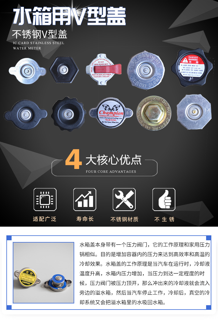 Крышка водяного бака радиатора автомобиля, крышка водяного бака с шестигранным противолежащим покрытием, красная резиновая прокладка