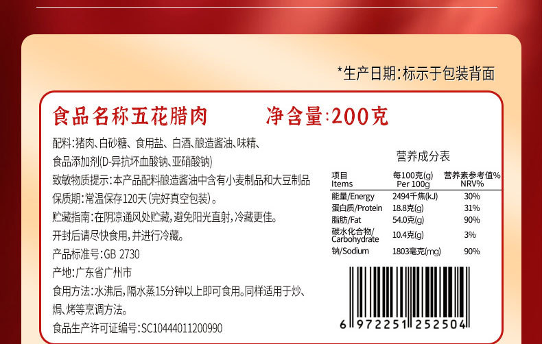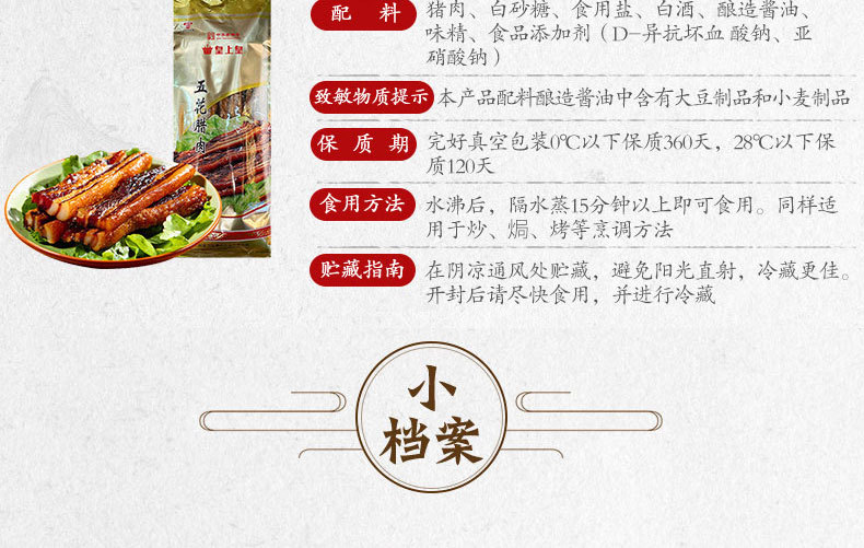 ![]() | Five-flower bacon 200g/bag | ¥23.8 / ≈ 287 ₽ | 20 | 5248128574335 | |