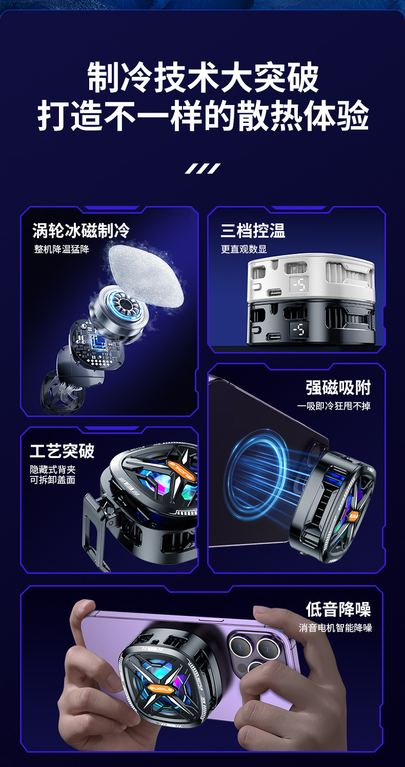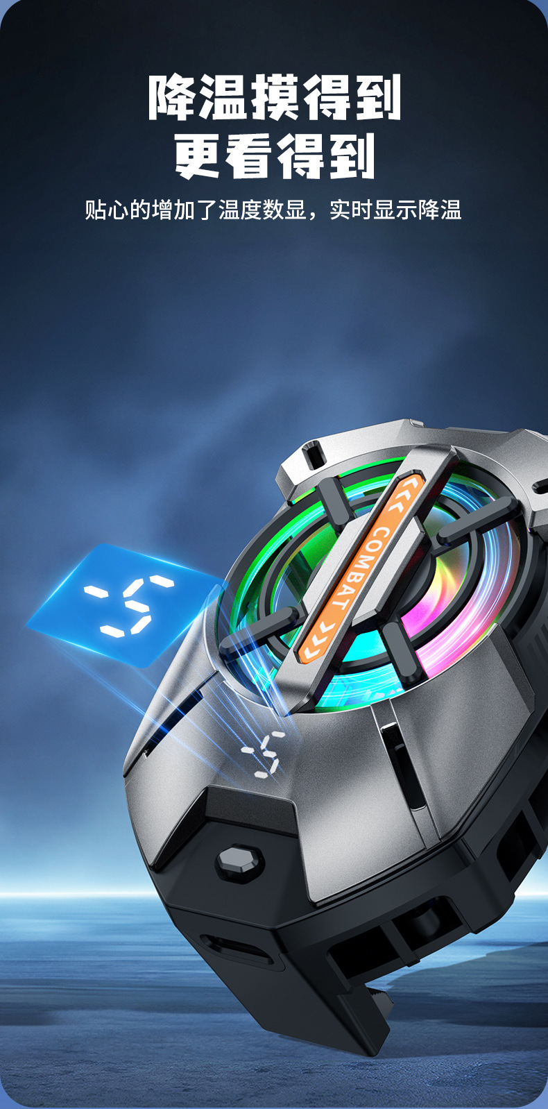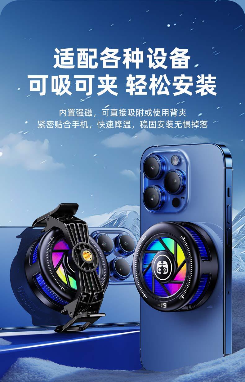 Новый радиатор для мобильного телефона 2025 с магнитным цифровым дисплеем, полупроводниковое охлаждение, прямая продажа для киберспорта