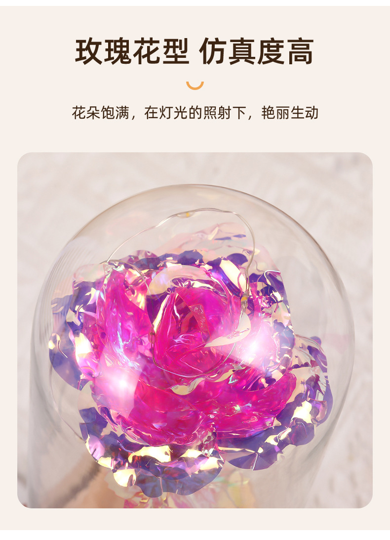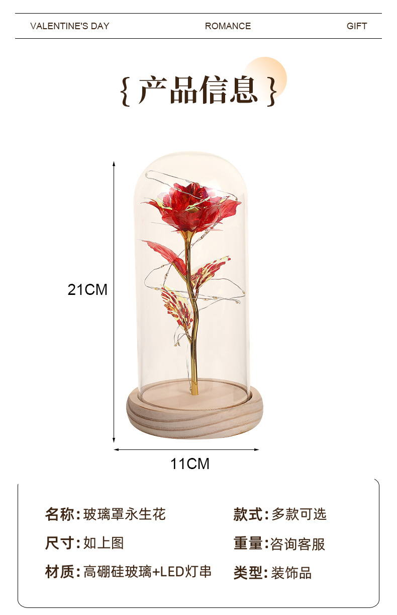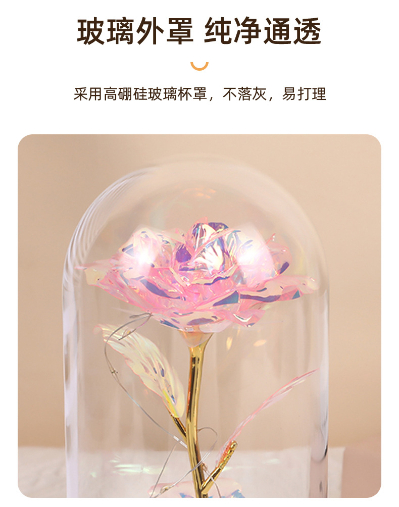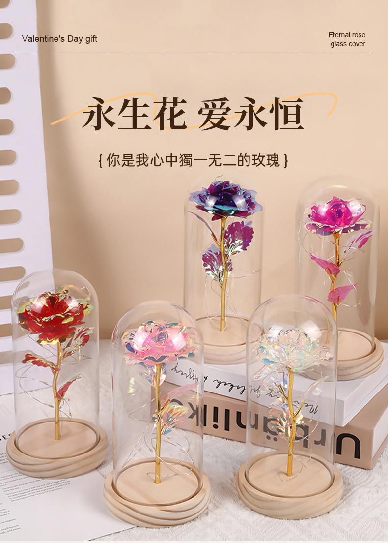 Цветная золотая фольга Роза Стеклянный колпак Деревянная основа Ночной свет Подарок на День святого Валентина Оптовая продажа Цветы праздника