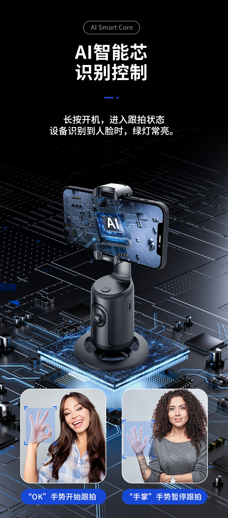 Новый держатель для мобильного телефона и камеры P01, 360 градусов, отслеживание лица, интеллектуальное распознавание, настольный стабилизатор для мобильных трансляций