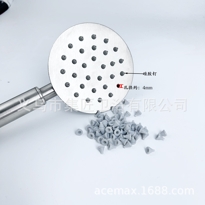 (原来花洒 喷头 顶喷是不锈钢材料一般都可以通用)安装方法:捏住硅胶孔屁股挤进不锈钢板孔里面,直塞进去 不能旋转进去避免操作不当不锈钢产品把硅胶钉划破导致出现漏水情况