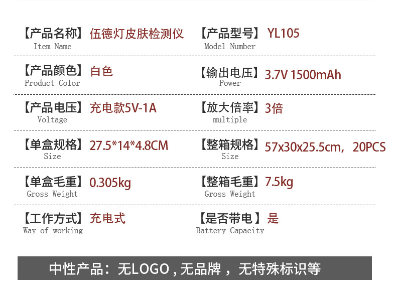 Деревянная лампа-детектор кожи, вторая генерация, LED лампа, холодный свет, прибор для управления кожей Wood's, оптовая продажа
