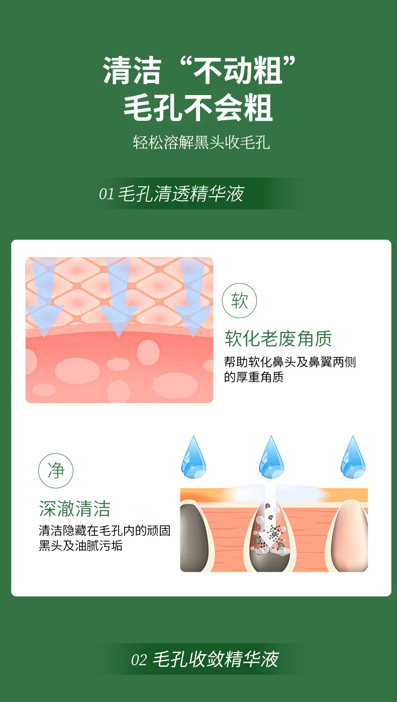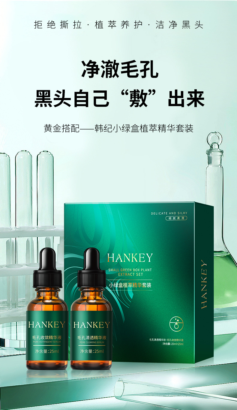 Корейная жидкость для удаления черных точек, маленькая зеленая коробка, набор эссенций для ухода за зоной Т, удаление черных точек, сужение пор