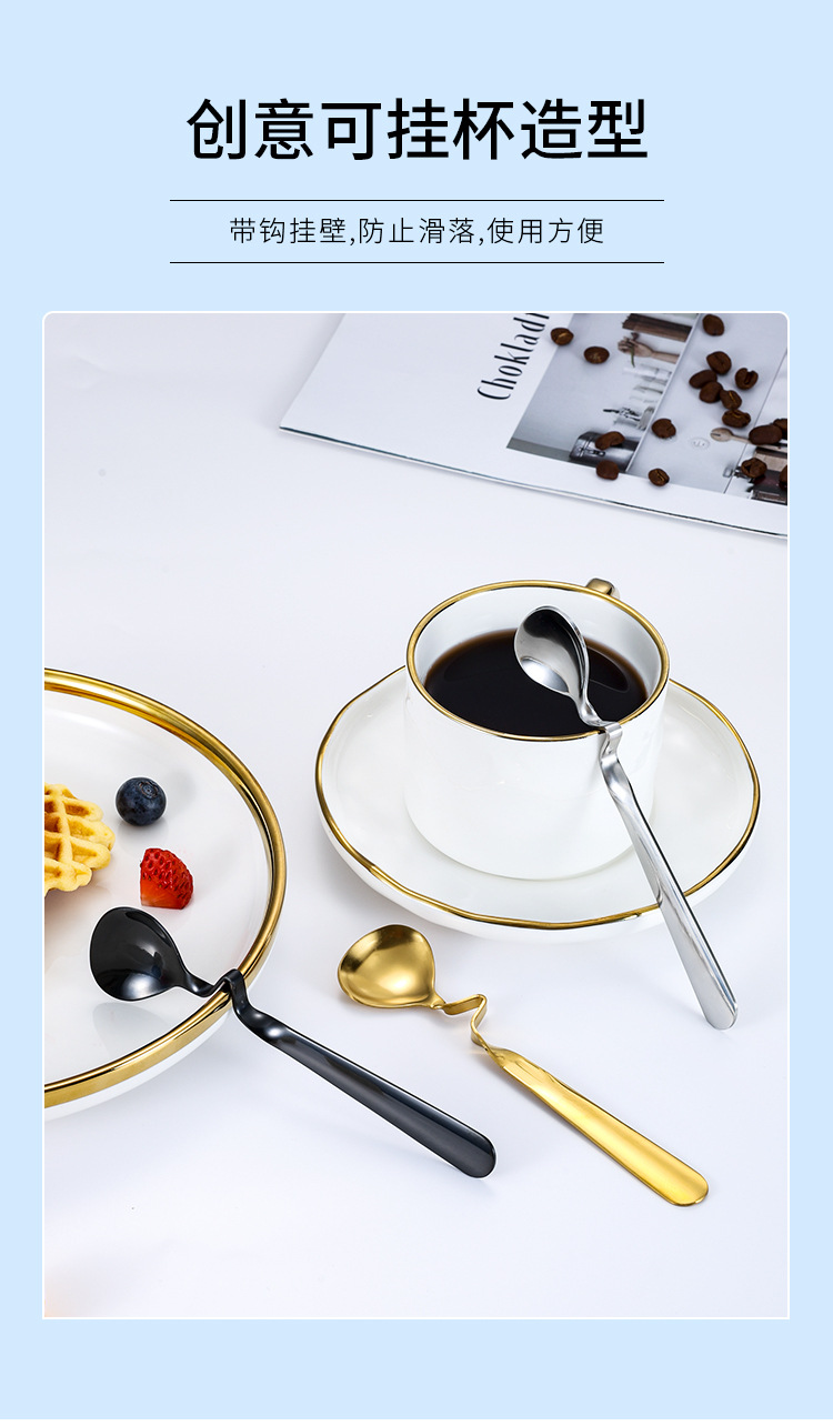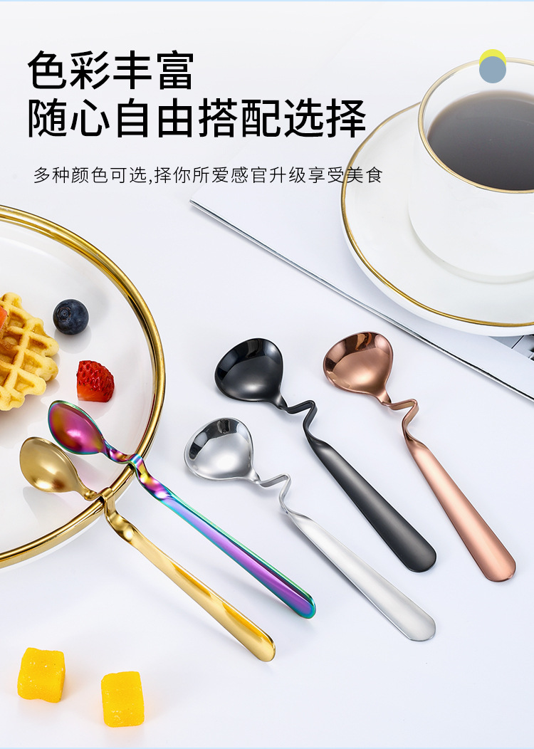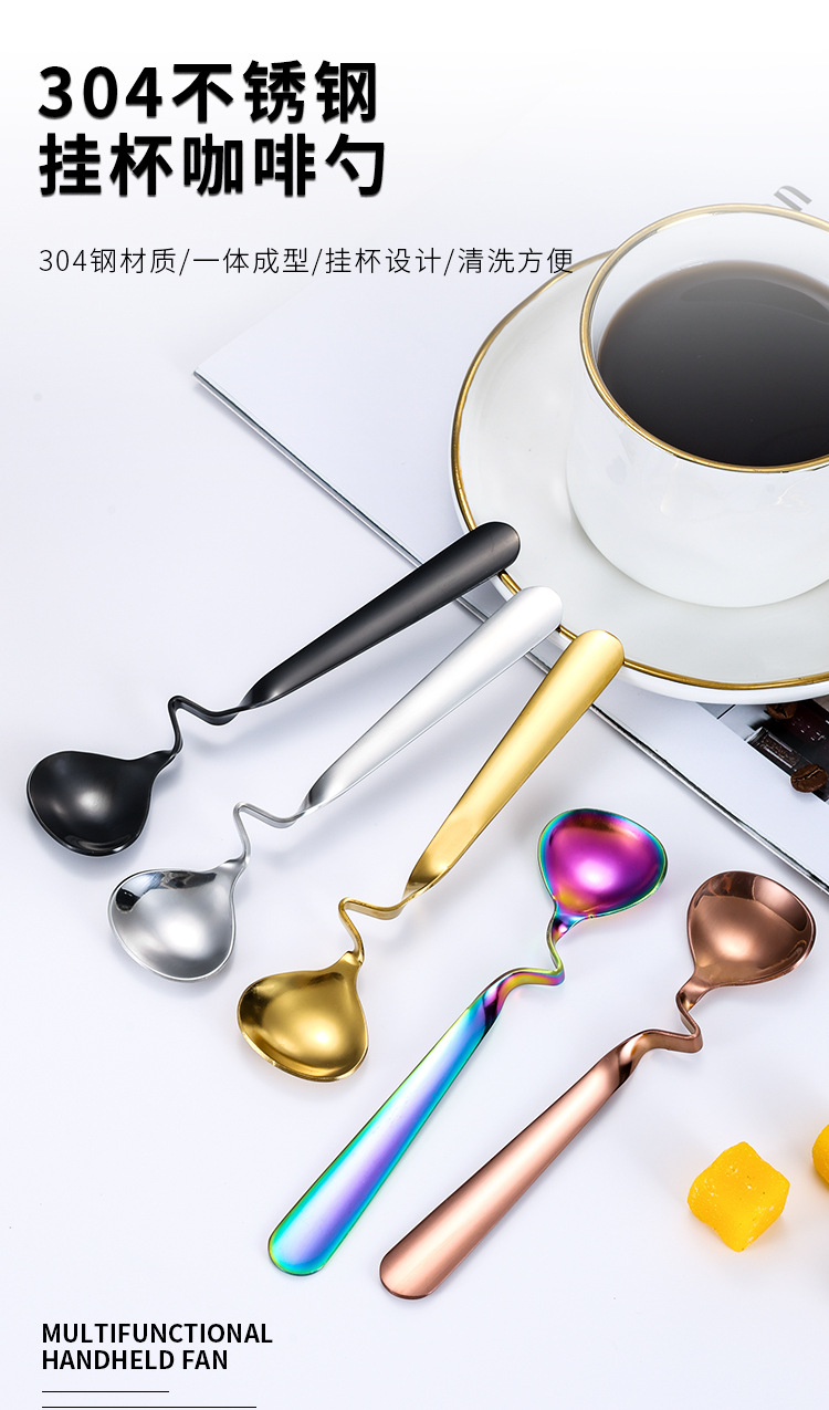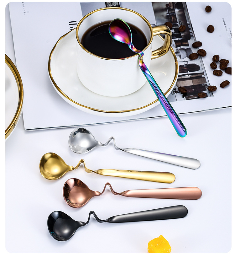 Креативная ложка для кофе с изогнутой ручкой из нержавеющей стали 304, для десертов и мороженого, милый кухонный аксессуар, ложка для перемешивания