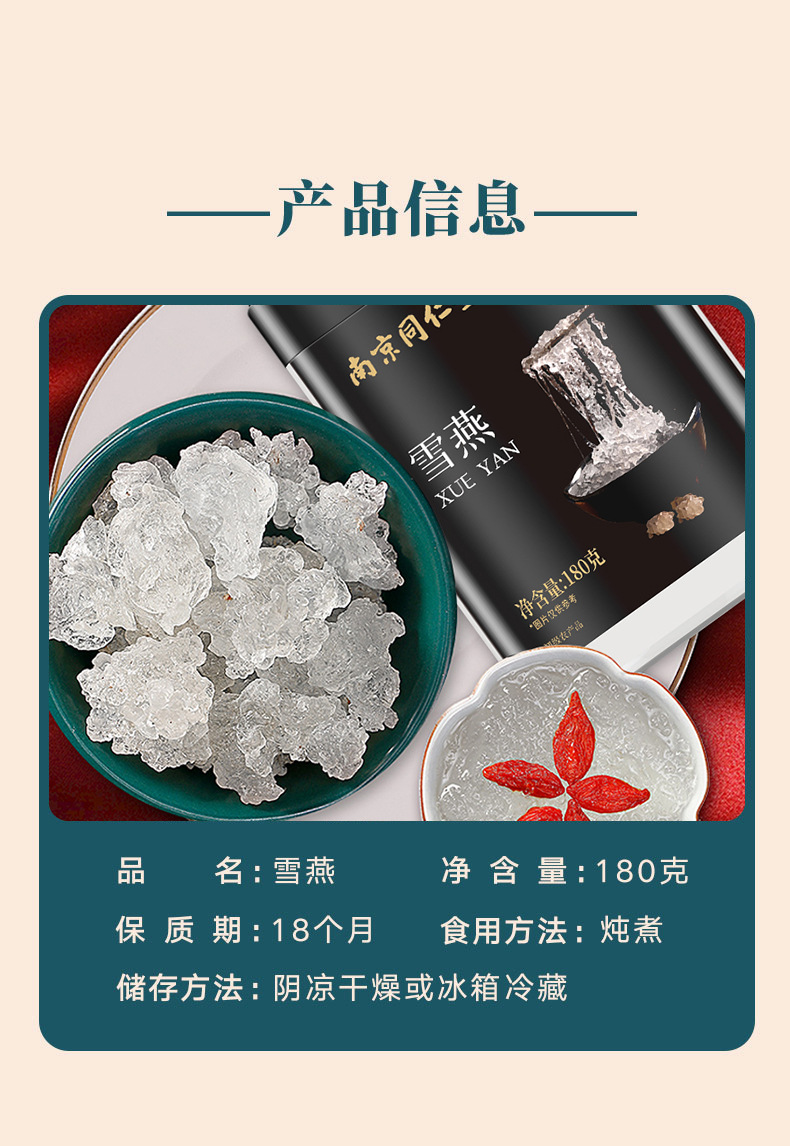 📦 | [nanjing tongrentang] snow swallow 180g/can | 1шт: ¥12.69, 10шт: ¥8.69, 50шт: ¥8.19 | 129 | 5074824504343 |