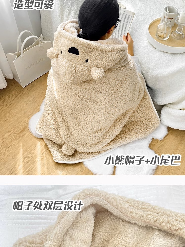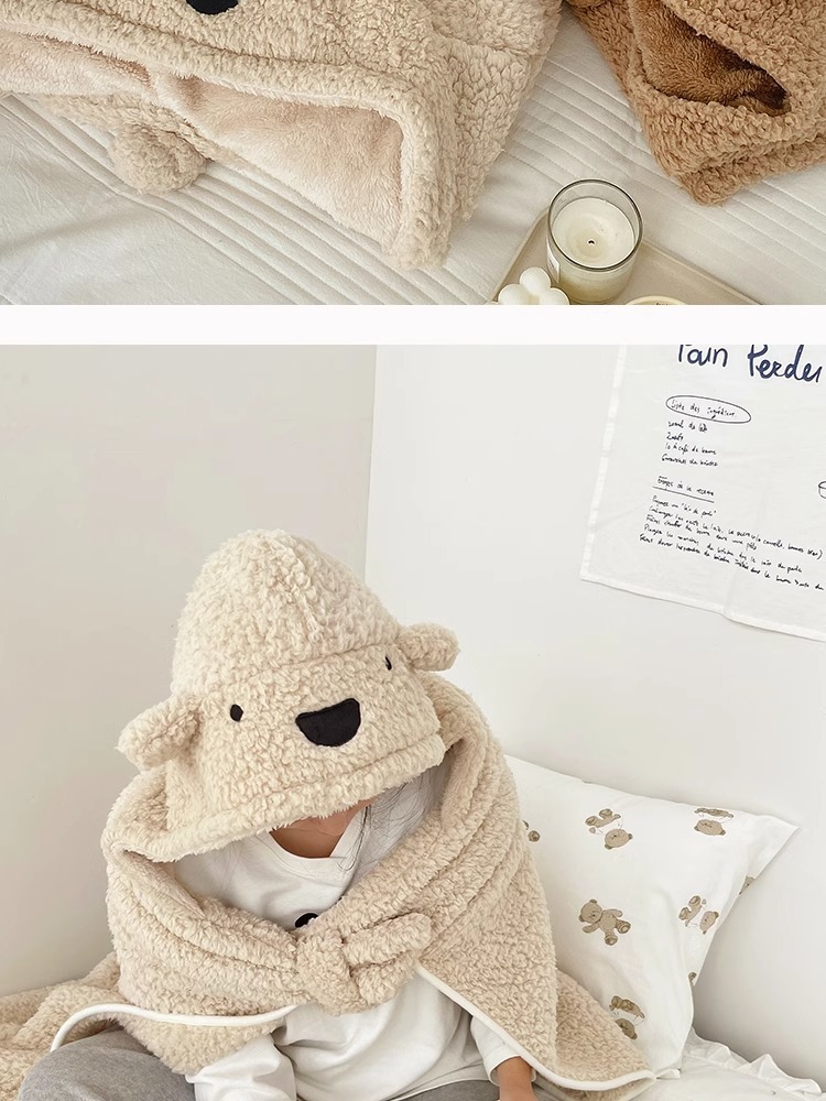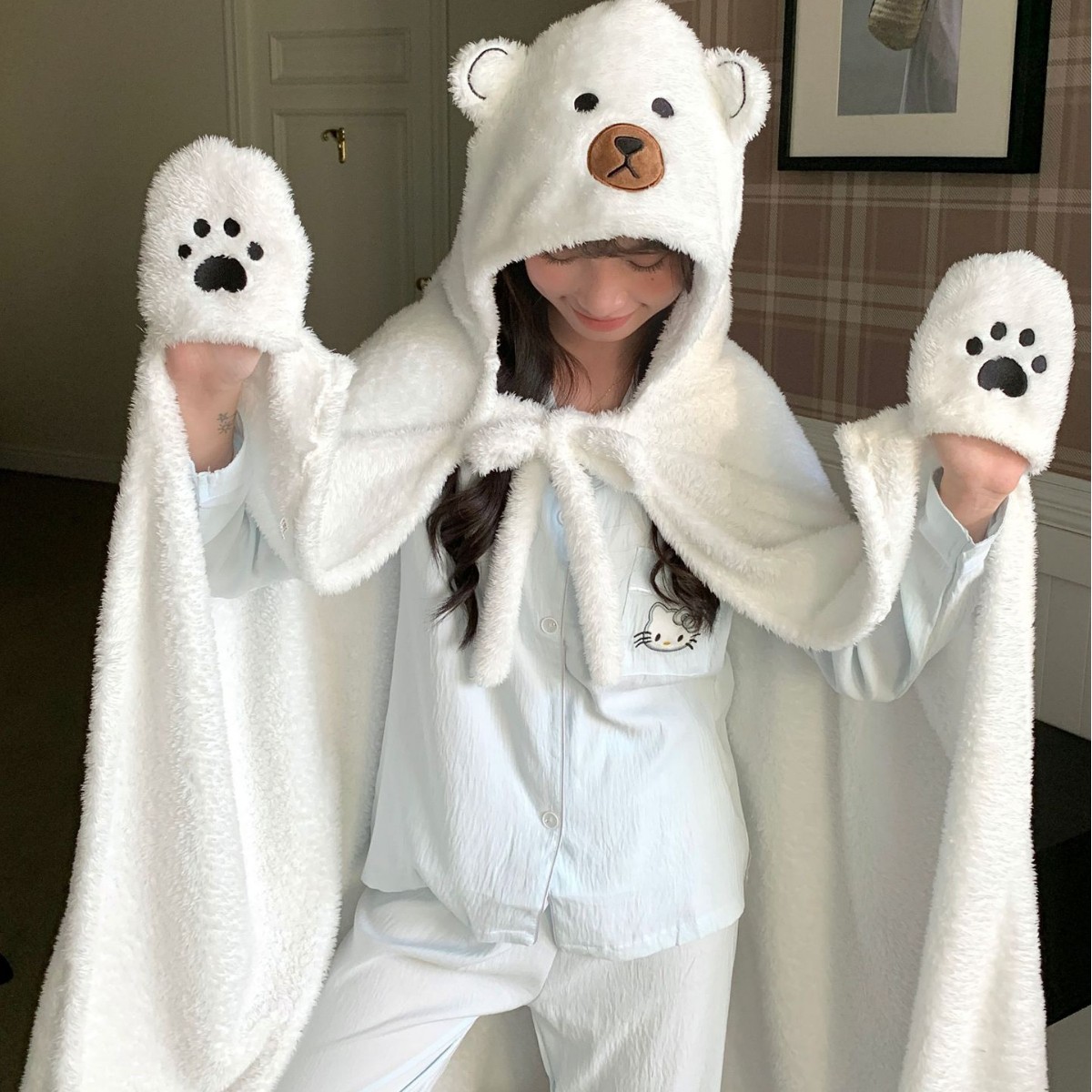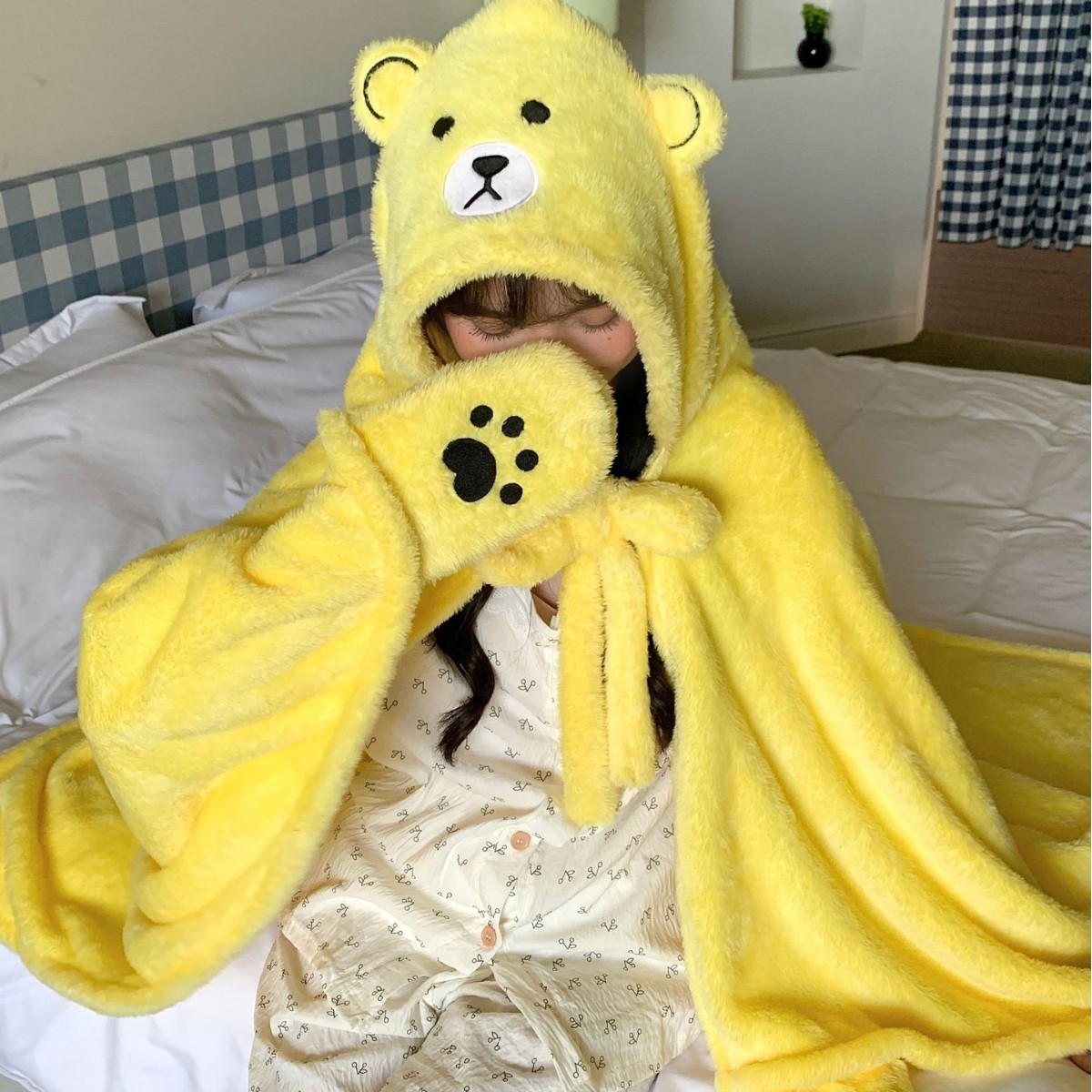 мультяшный медведь милое осеннее и зимнее утолщенное теплое одеяло шаль с капюшоном для студентов одеяло для обеденного перерыва в стиле накидки