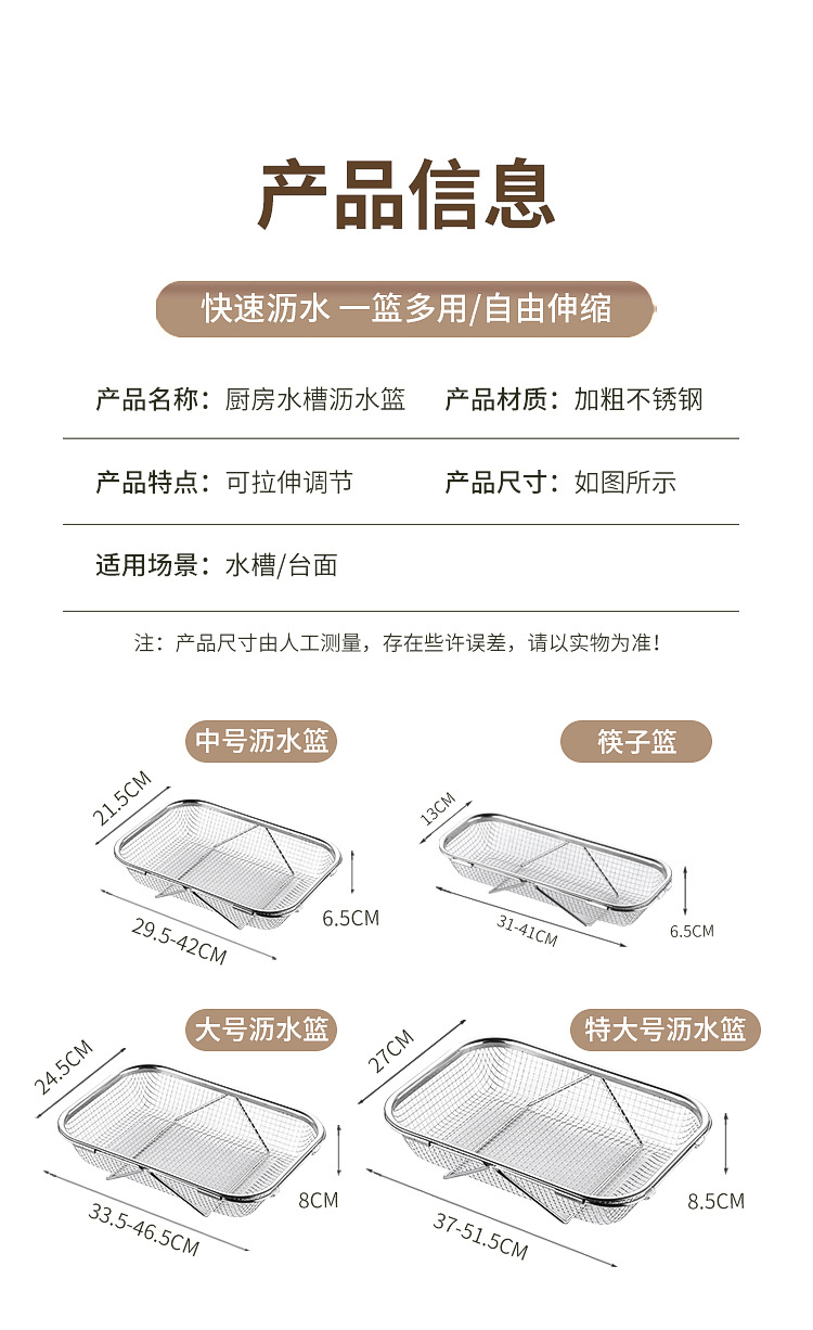 ![]() | 304 stainless steel | Telescopic mesh basket medium size 30*21 | ¥16.5 / ≈ 199 ₽ | 19999 | 5832850269923 | |