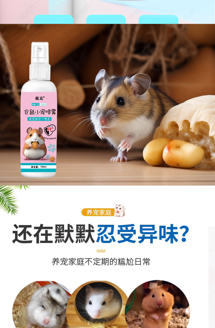 Дезодорирующий спрей для домашних животных, дезодорирующий спрей для хомяков, очищающий запах для мелких домашних животных