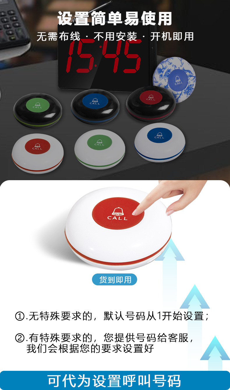 无线呼叫器按铃分机餐厅茶楼酒吧美容院服务铃银行柜台铃医院叫人 防水型汉堡式单键按钮发射器 餐厅网吧棋牌室一键无线呼叫器分机 棋牌室包厢服务铃无线餐饮店茶楼呼叫器包房饭店餐厅火锅加汤网吧 防水型一键无线呼叫器分机单键按钮老人呼唤铃餐厅餐饮网吧棋牌室 足浴会所呼叫服务铃远距离按钮呼叫铃无线呼叫器分机 餐厅无线呼叫器茶楼棋牌室KTV包房台卡呼叫铃网吧医院服务铃按铃