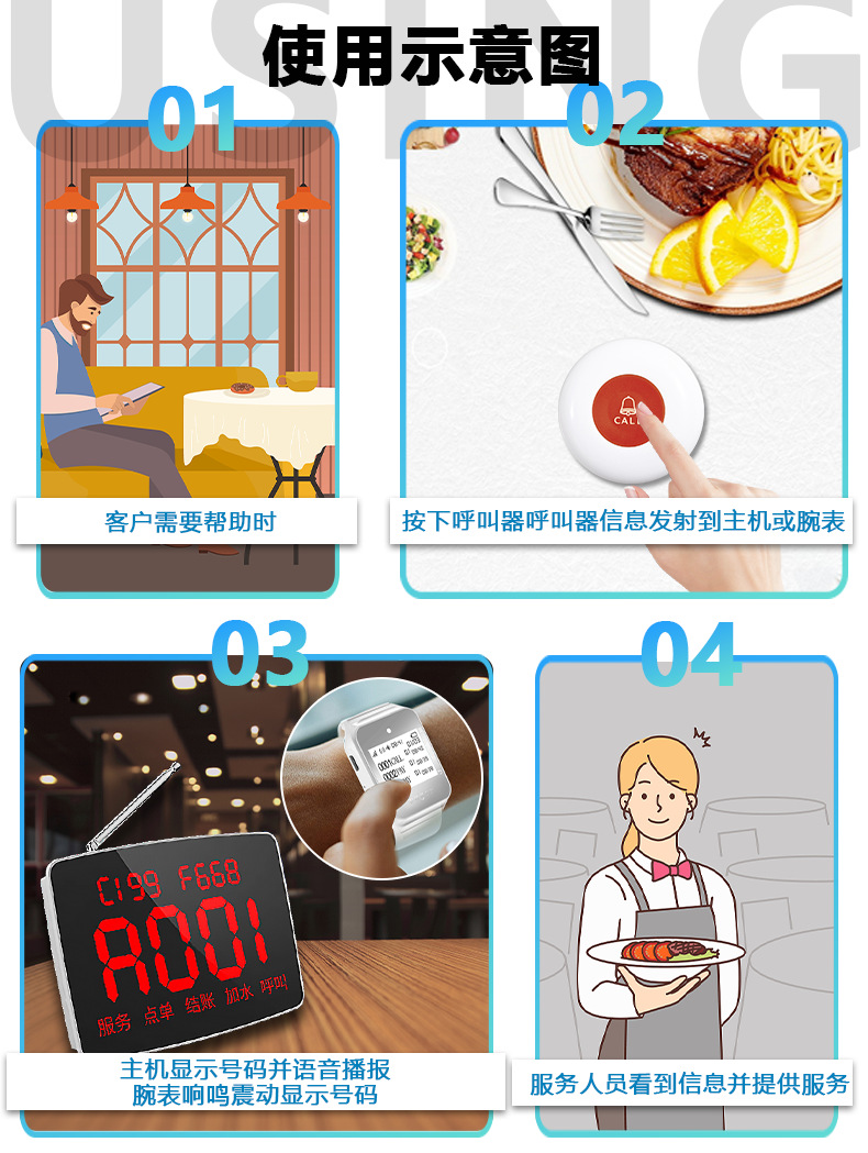 Ordering food and calling for a waiter to deliver Wholesale waterproof wireless long distance smart hospital pager