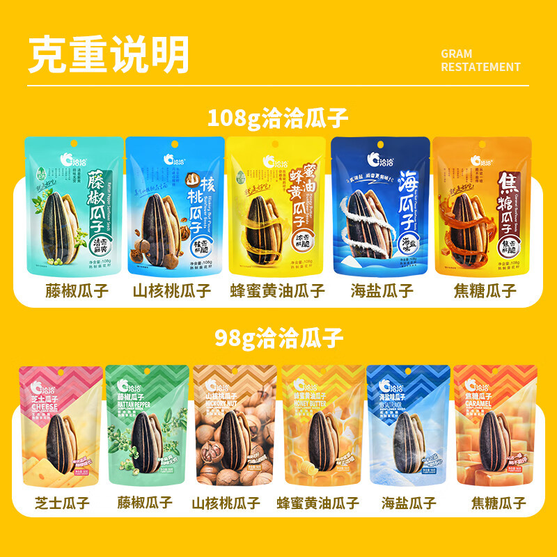 ![]() | Qiaqia hands [five flavors] melon seeds 108g (single bag) | ¥4.99 / ≈ 60 ₽ | 335 | 5262481232340 | |