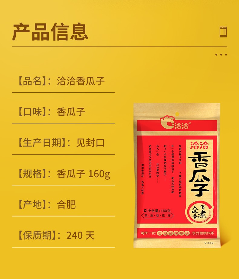 ![]() | Qiaqia [classic] melon seeds 260g (single bag) | ¥8.49 / ≈ 102 ₽ | 372 | 5078857476375 | |