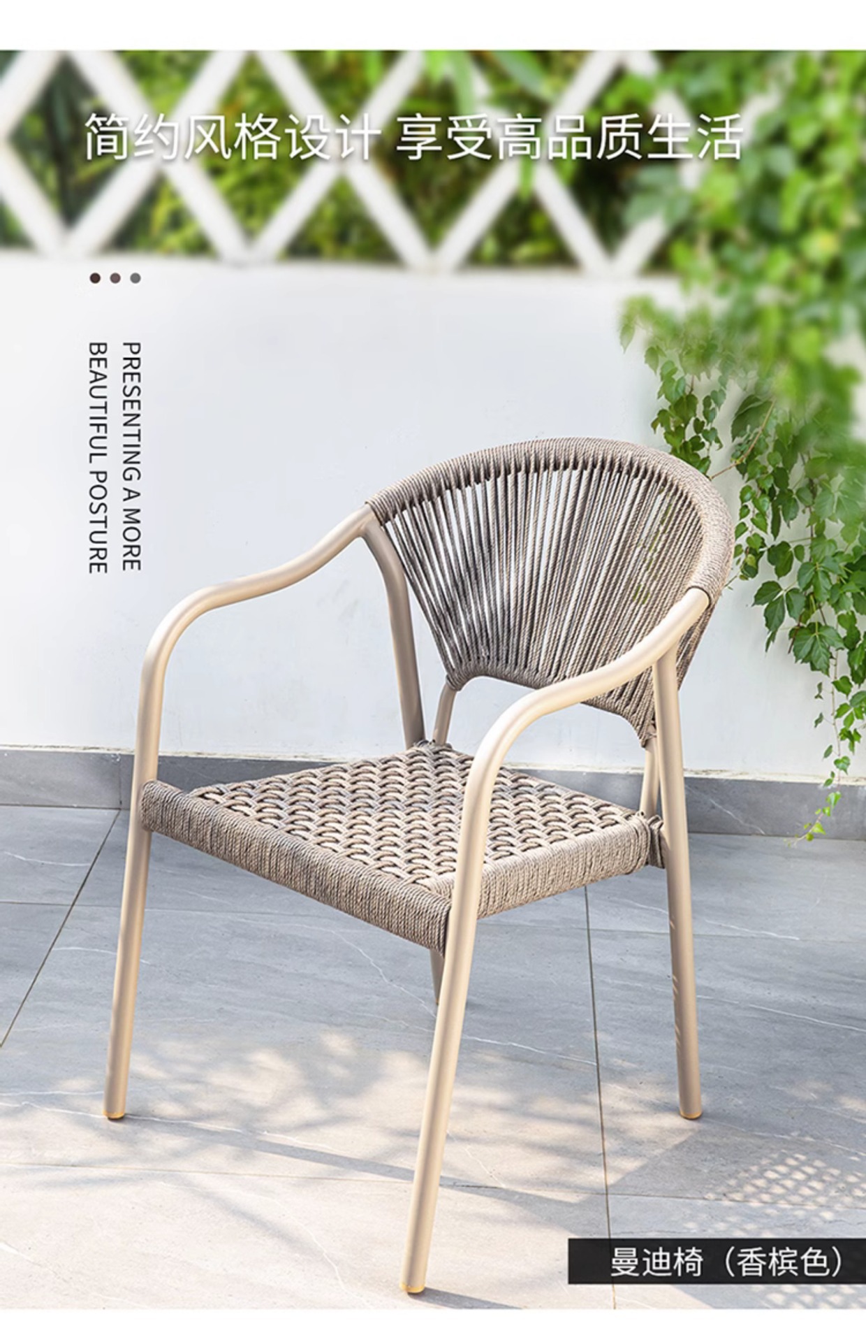 Кресло из ротанга в скандинавском стиле для улицы, одно кресло для террасы, алюминиевый обеденный стул с подлокотниками