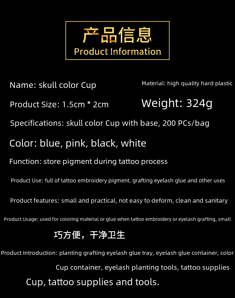 - Versatile Tattoo Supplies:This product is a versatile tattoo supply package, including 200 individual cups of tattoo ink and bone skull design ink cups.